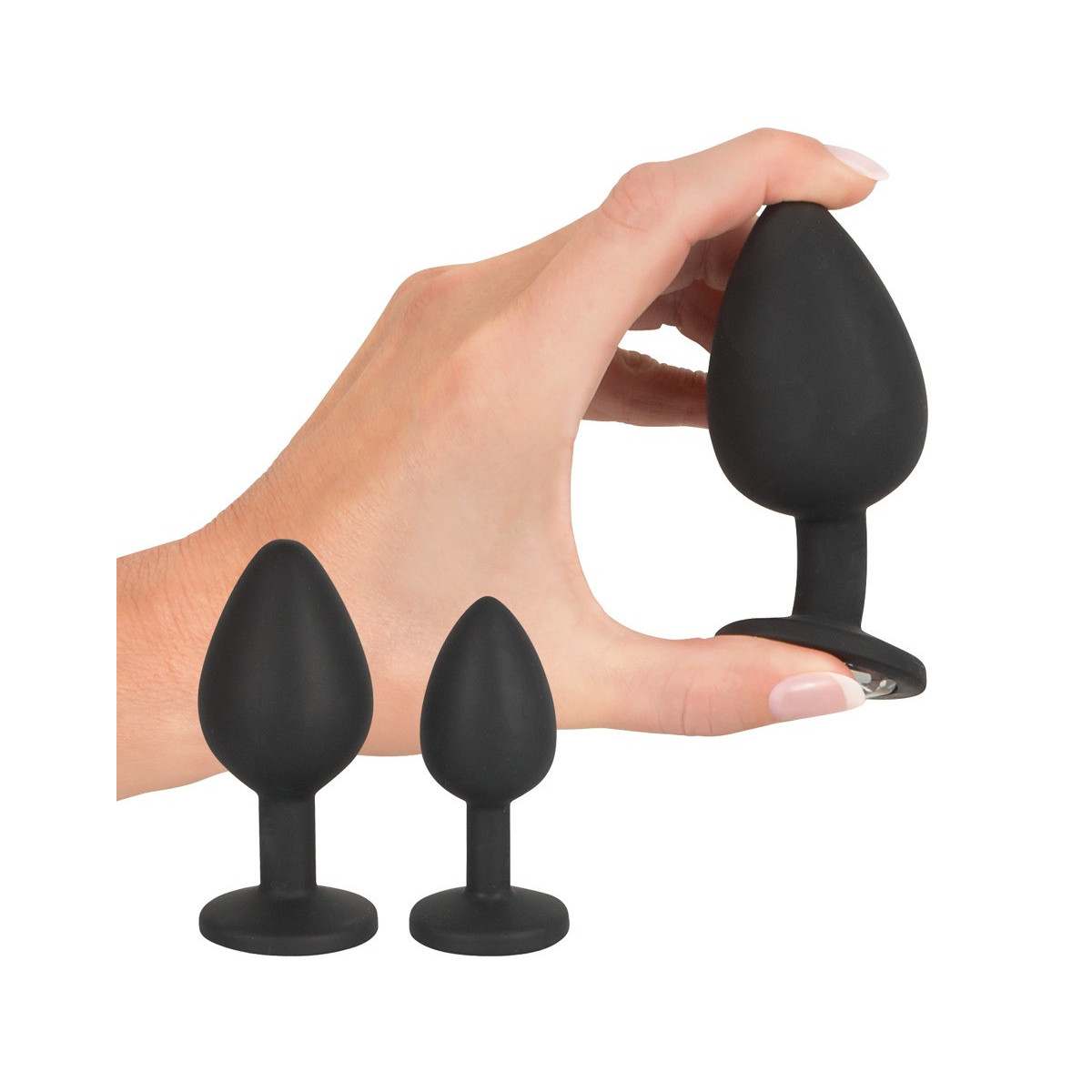 3 x plug anali di diverse dimensioni per un perfetto allenamento stretch e ognuno con gemma alla base per un look eccitante nella stanza posteriore. Dimensioni: