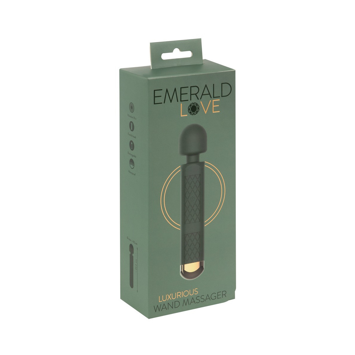 Emerald Love Luxurious - Massaggiatore con Testa Vibrante, Stimolante, Lungo, 22 cm, Ricaricabile, Silicone, Verde