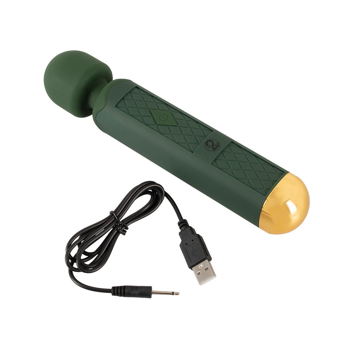 Lussuoso massaggiatore a bacchetta ricaricabile di Emerald Love con testa massaggiante mobile. 10 modalità di vibrazione forniscono un piacere di massaggio individuale e possono essere comodamente controllati con il controllo di un pulsante sul manico - anche sotto/in acqua! Il design ergonomico con il manico lungo e la testa di massaggio mobile raggiunge facilmente tutte le parti del corpo e i punti di piacere esterni per vibrare e massaggiare le coccole. La texture vellutata e morbida al tatto offre una sensazione molto piacevole sulla pelle. Cavo di ricarica USB incluso.