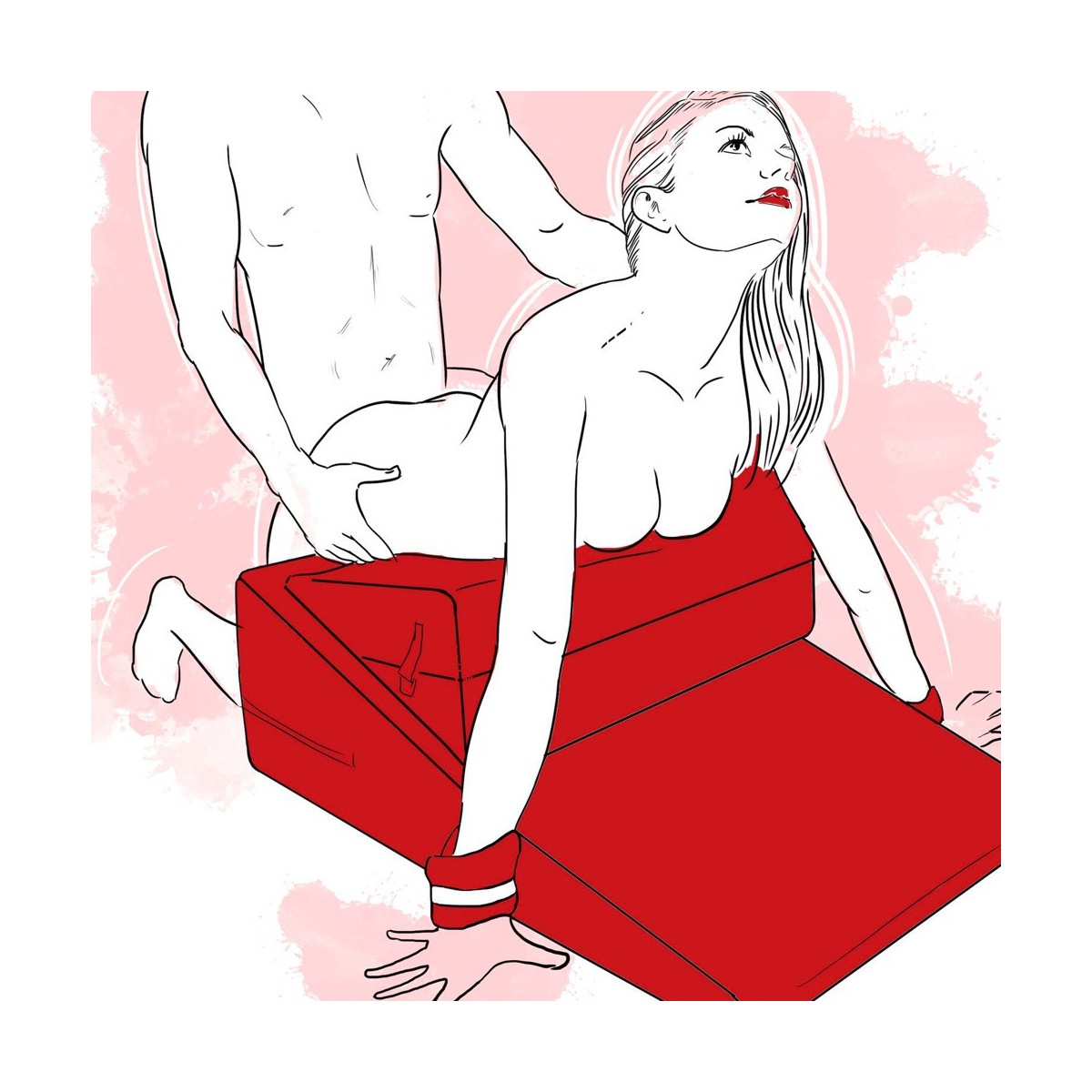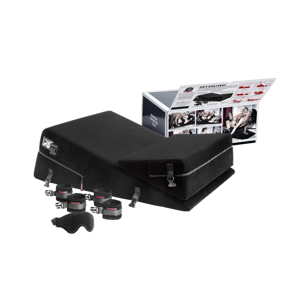 2 cuscini a cuneo d'amore di forma anatomica Combinazione cuneo/supporto di Liberator, più 4 cinghie per mani e piedi rimovibili e regolabili e maschera per gli occhi inclusa. I morbidi rivestimenti in microfibra dei cuscini aderiscono l'uno all'altro e sono rimovibili dal corpo resistente all'umidità per la pulizia.