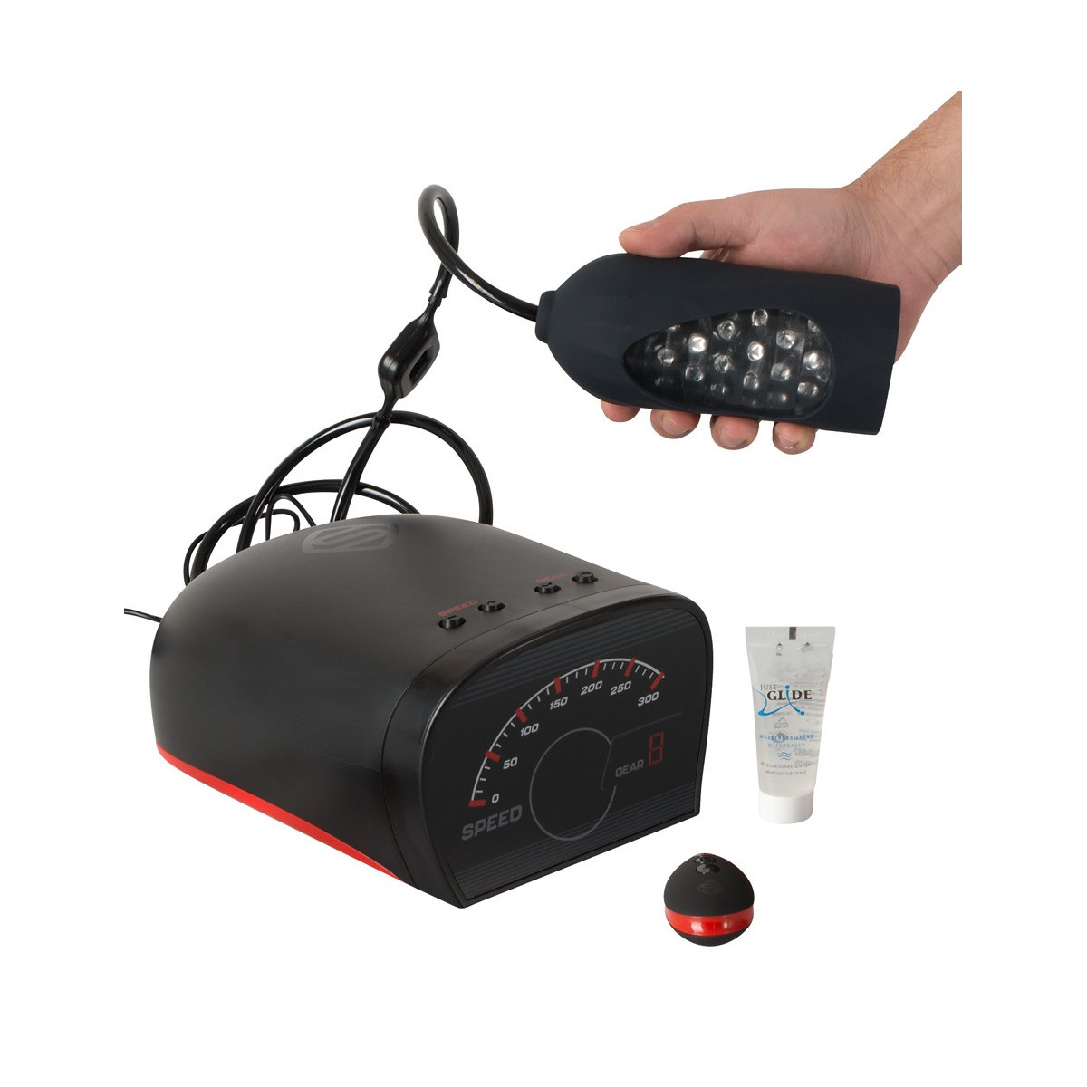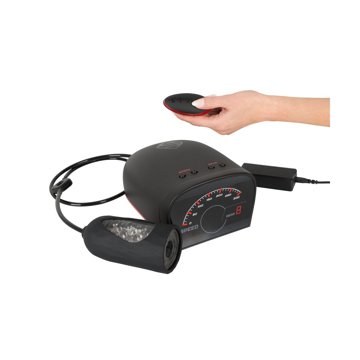 Alloggiamento del motore lungo 20 cm, largo 13 cm e alto 8 cm. Cavo di alimentazione lungo 2 m, lunghezza del tubo 1,5 m. Manica e filtro lavabili (protegge il motore dai liquidi). Adattatore di alimentazione AC 100-240 V (Euro Plug) incluso. ABS (alloggiamento e pulsanti di controllo), silicone (tubo), TPE (manicotto), PP (filtro).
