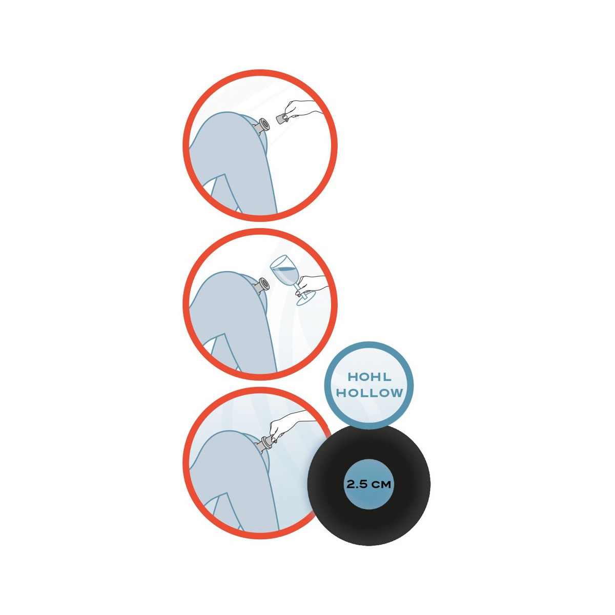 Lunghezza totale: 10 cm, profondità di inserimento: 8,5 cm, Ø esterno 3-5 cm, Ø interno 2,5 cm. Silicone con rivestimento in PU.