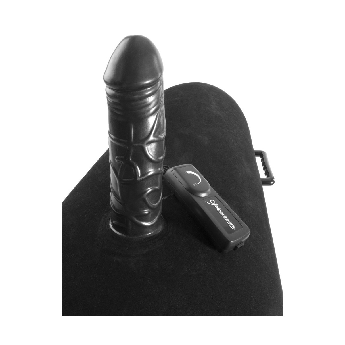 Gonfiabile, lungo cuscino da seduta con vibratore integrato in look pene distintamente venato. 3 maniglie robuste forniscono una presa sicura durante i vari piaceri dell'equitazione. La vibrazione a più velocità è infinitamente variabile da dolce a violenta con il controllo cablato. Il cuscino del sedile ha un rivestimento in velluto che si pulisce e non irrita la pelle. (Si prega di ordinare le batterie separatamente: 2 x AA)