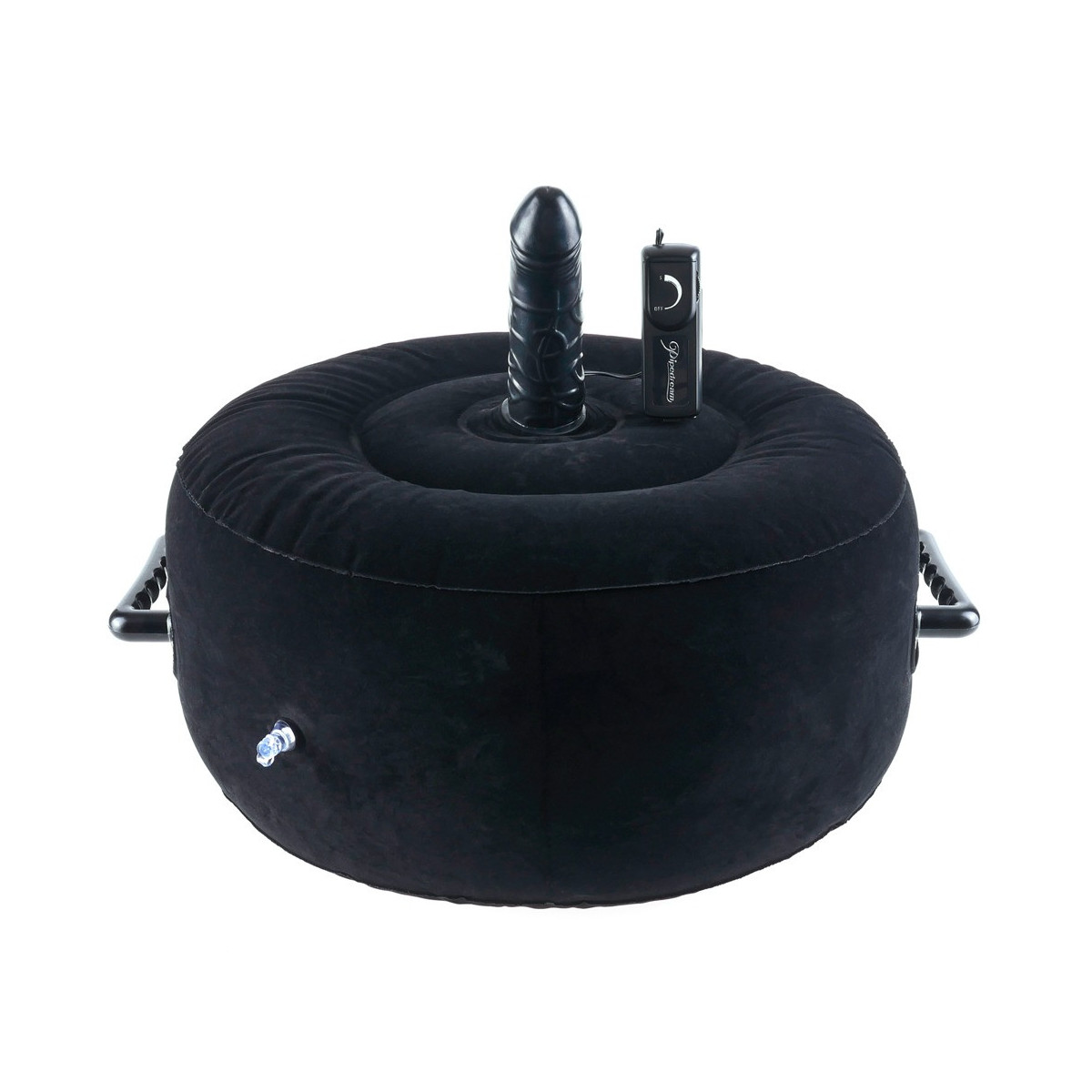 Cuscino di seduta gonfiabile con vibratore integrato in un look da pene con venature distinte. Le robuste impugnature garantiscono una presa sicura durante il saliscendi ritmico. La vibrazione a più velocità è infinitamente variabile da dolce a intensa con il comando cablato. Il cuscino del sedile è dotato di un floccaggio lavabile e a prova di pelle in look velluto. Grazie alla valvola combinata, il cuscino si gonfia rapidamente e si sgonfia rapidamente dopo l'uso. (Si prega di ordinare le batterie separatamente: 2 x AA)