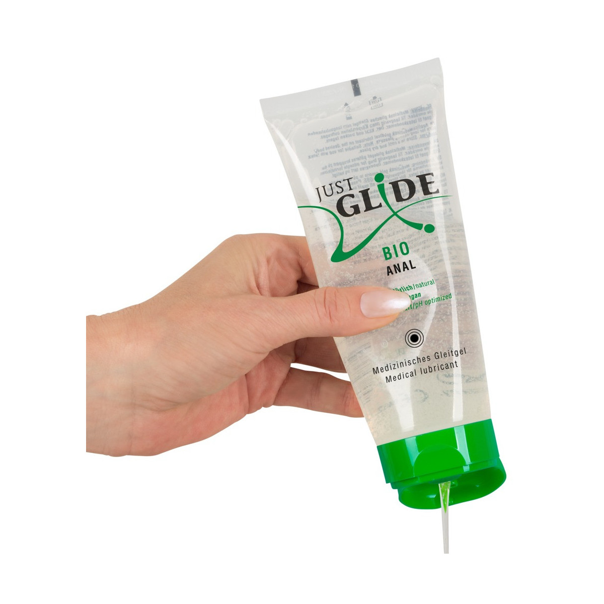 Just Glide Bio Anal è un gel lubrificante organico naturale a base di acqua/bioglicerina - appositamente sviluppato e ottimizzato nel valore del pH per un piacevole piacere anale. Ecologicamente corretto in un tubo ricavato da una materia prima rinnovabile, la canna da zucchero, che durante la crescita lega la CO2 in modo rispettoso del clima. La formula insapore e inodore è vegana e sicura per i preservativi in lattice. È inoltre privo di oli e grassi, in modo che il lubrificante possa essere lavato via senza lasciare tracce.
