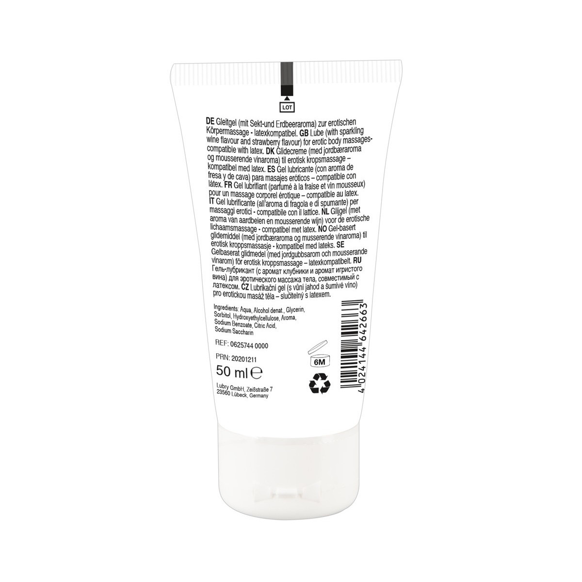 Gel vegano a base d'acqua con profumo e aroma di fragola per un massaggio erotico su tutto il corpo. 50 ml.