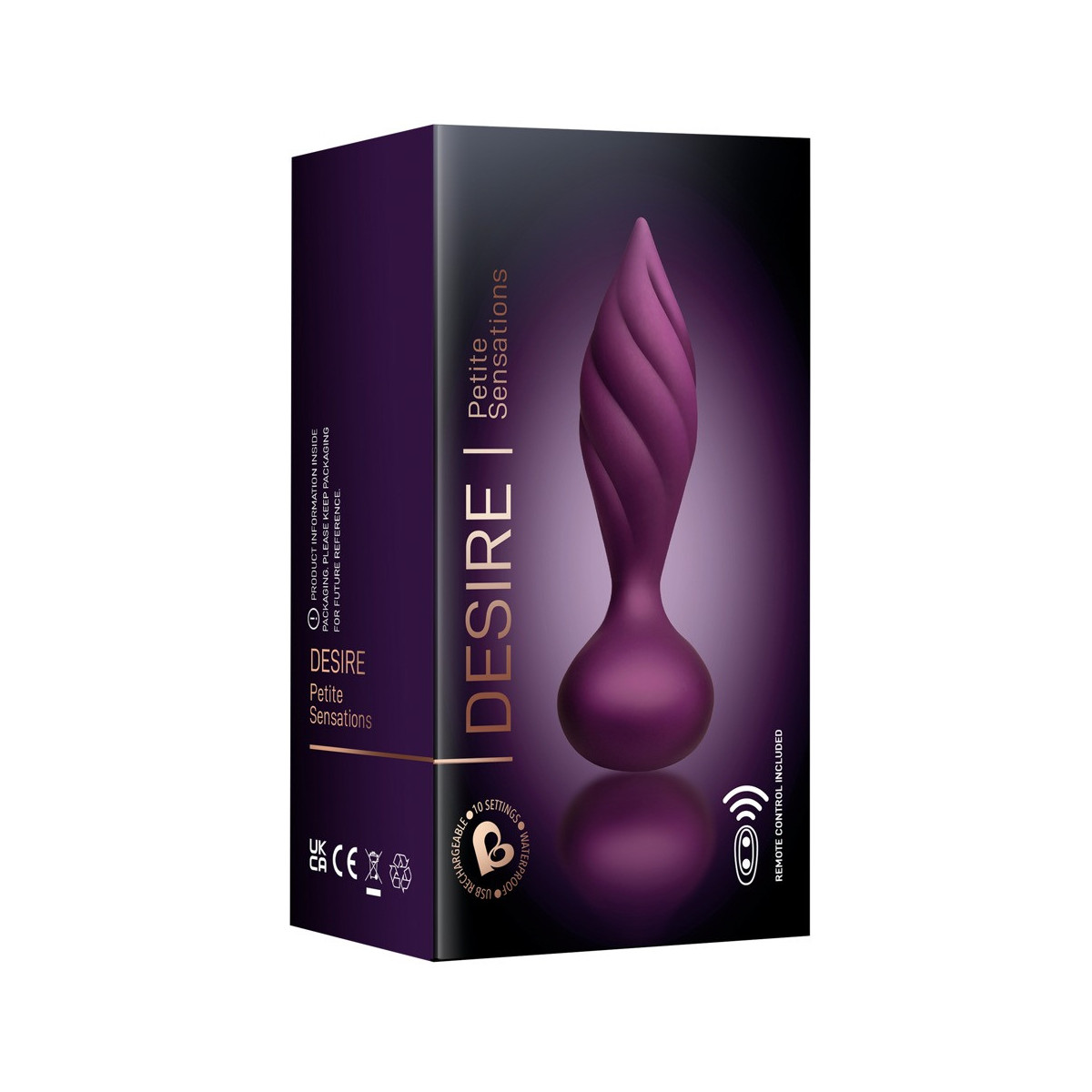 Rocks Off Desire - Plug Anale con Vibrazione, 10 MOD, Impermeabile, Telecomando, Ricaricabile, Viola