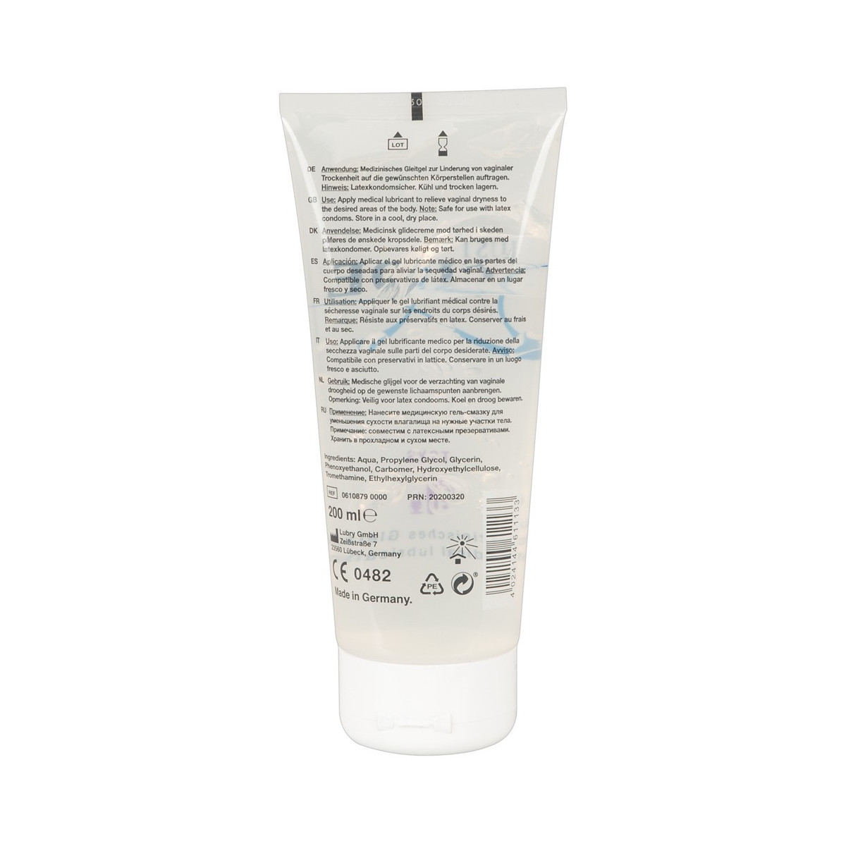 Aqua, Propylene Glycol, Glycerin, Phenoxyethanol, Carbomer, Hydroxyethylcellulose, Tromethamine, Ethylhexylglycerin