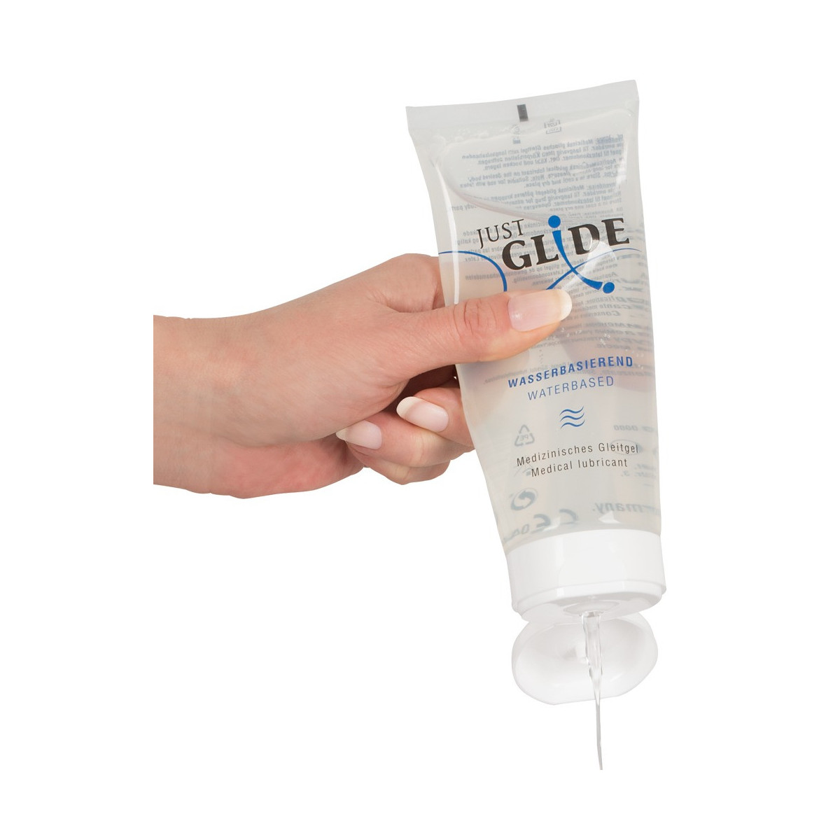 ... e questo dura a lungo. Just Glide a base d'acqua è 100% vegano ed è adatto anche per l'uso sulla pelle sensibile. Senza olio e grasso. Lavabile. Preservativo in lattice sicuro. Inodore e insapore.