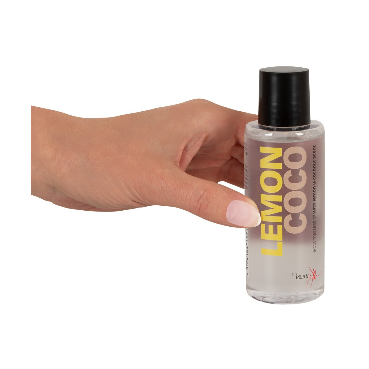 Olio da massaggio erotico Just Play con un eccitante ed esotico profumo di cocco e limone che coccola tutti i sensi e risveglia gli stati d'animo erotici durante un massaggio con il partner. Molto economico. Vegano. 100 ml.