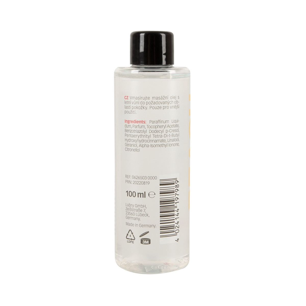 L'olio da massaggio Beach Day di Just Play ha un profumo estivo fresco come l'acqua che rinvigorisce i sensi e mette di buon umore (in vacanza), come una bella giornata di spiaggia al mare! Per massaggi stimolanti su tutto il corpo, ideali per ore romantiche in due. L'olio per massaggi è particolarmente produttivo: anche una piccola quantità è sufficiente per un'esperienza di massaggio di lunga durata. 100 ml.