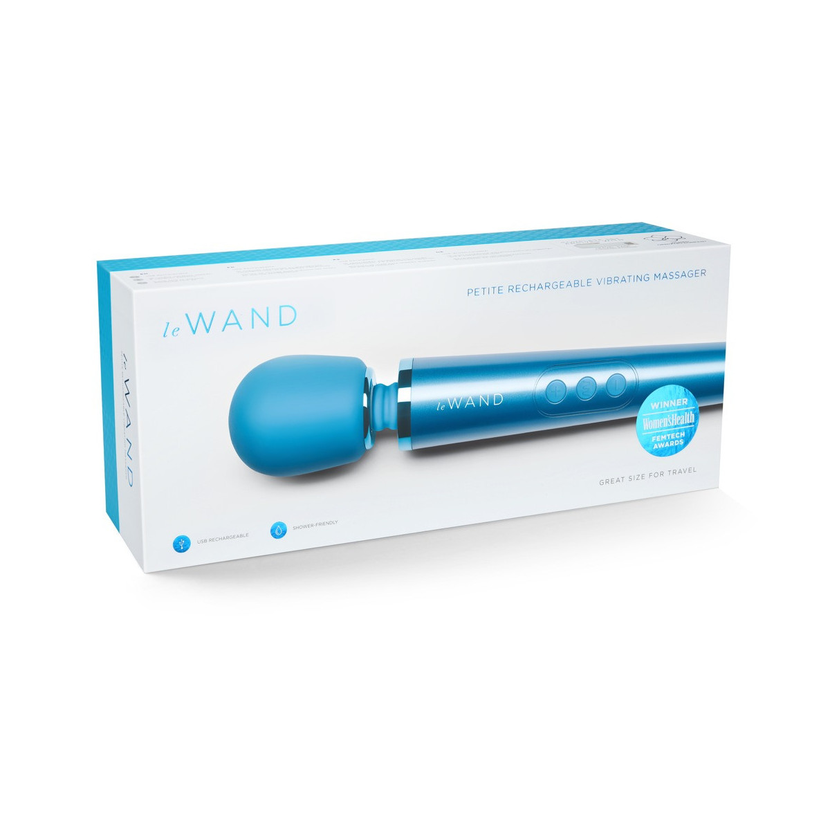 Questo bastone da massaggio Petite di Le Wand ha una forma classica con un collo flessibile e una testa rotonda. Ciò che lo rende speciale, tuttavia, è la sua dimensione pratica, che gli permette di stare comodamente nel vostro bagaglio. Quindi può anche coccolarti in movimento con le sue 6 modalità di vibrazione in 10 velocità ciascuna, controllabili tramite tre pulsanti. La bacchetta per massaggi ha anche un blocco per evitare che si accenda accidentalmente ed è ricaricabile con il cavo di ricarica USB incluso. Una piccola borsa da viaggio è inclusa.