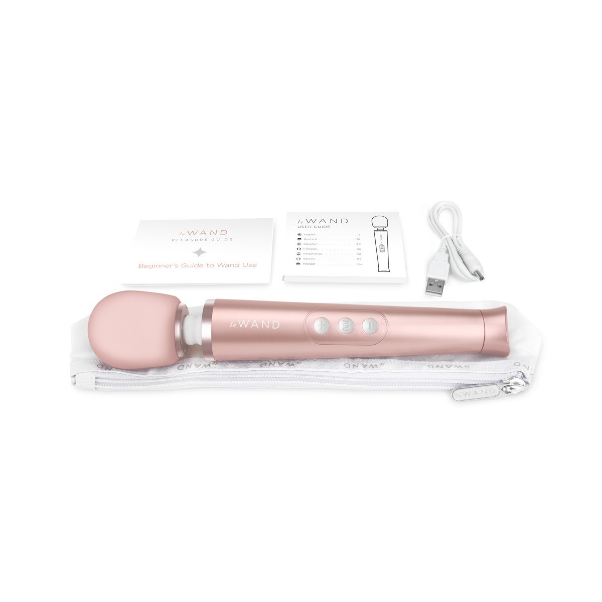 Questo bastone da massaggio Petite di Le Wand ha una forma classica con un collo flessibile e una testa rotonda. Ciò che lo rende speciale, tuttavia, è la sua dimensione pratica, che gli permette di stare comodamente nel vostro bagaglio. Quindi può anche coccolarti in movimento con le sue 6 modalità di vibrazione in 10 velocità ciascuna, controllabili tramite tre pulsanti. La bacchetta per massaggi ha anche un blocco per evitare che si accenda accidentalmente ed è ricaricabile con il cavo di ricarica USB incluso. Una piccola borsa da viaggio è inclusa.