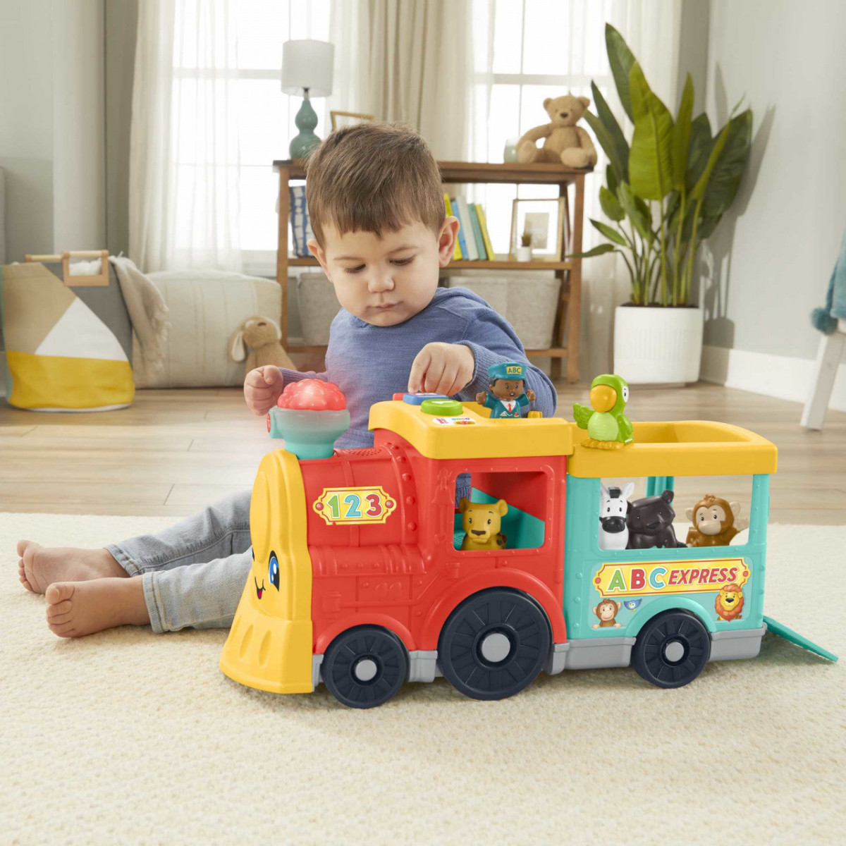 I bambini possono partecipare ad avventure della ferroviaria mozzafiato con il Trenino dell'ABC Little People da Fisher-Price. Questo grande trenino a spinta include 5 personaggi Little People da far sfrecciare sfrecciare sui binari con luci, suoni, musica e frasi. Mentre i piccoli macchinisti trasportano i loro passeggeri esotici per tutto il salotto, i contenuti di apprendimento Smart Stages li introducono all'alfabeto, ai numeri, ai colori e a tanto altro. Utilizza il pulsante con globo per scegliere tra italiano, spagnolo castigliano, portoghese e inglese britannico.