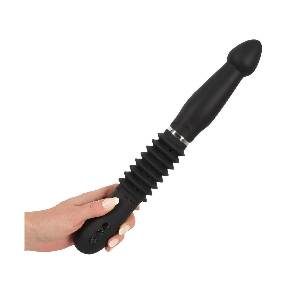 Lunghezza totale 30 cm, lunghezza d'inserimento 15 cm, Ø 4,1 cm. Silicone, PU, ABS. Colore: nero.