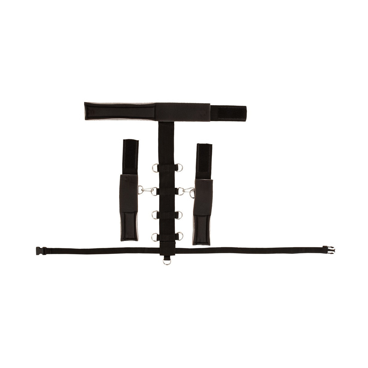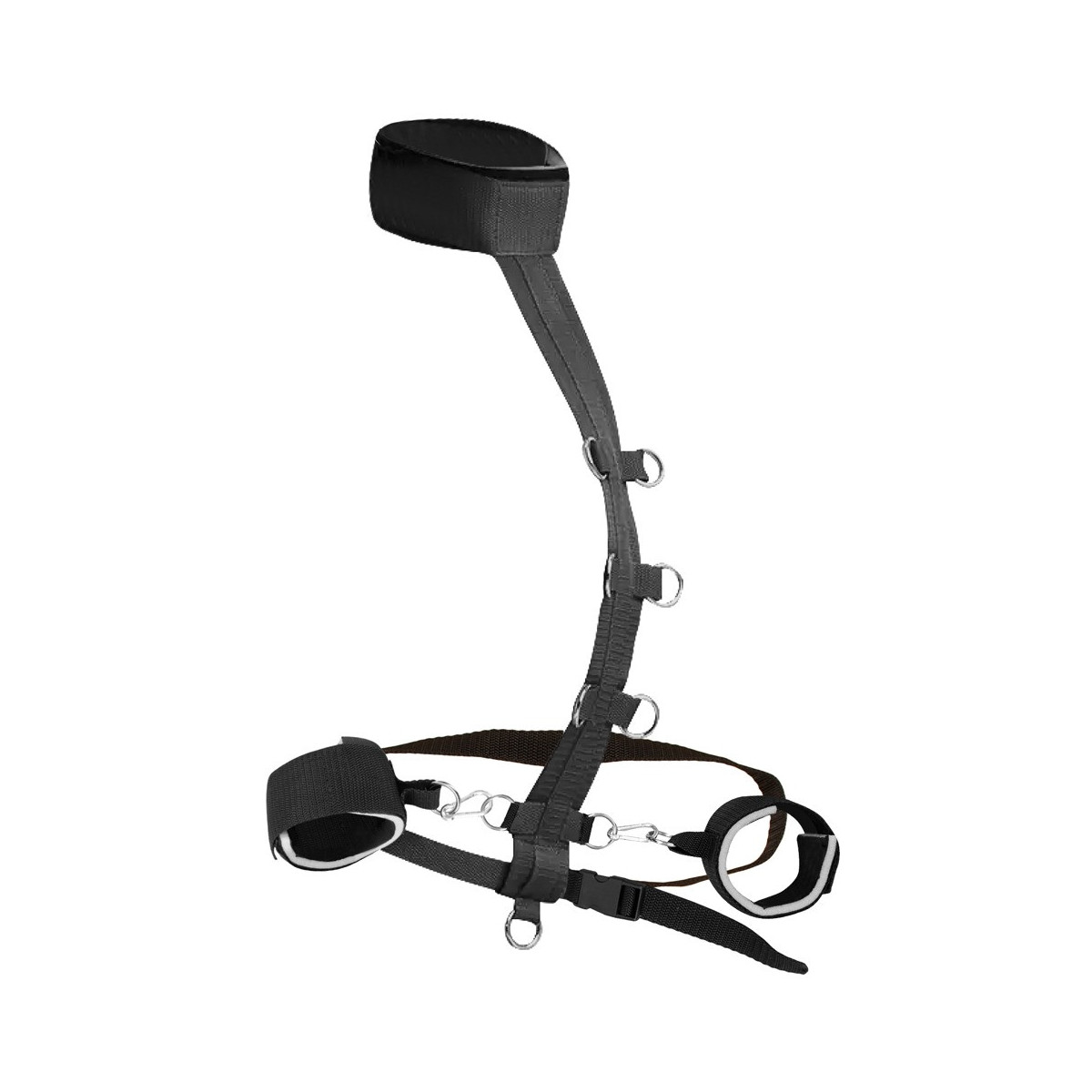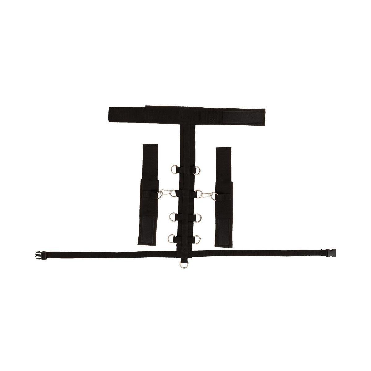 Il set di costrizione del collo di Bad Kitty combina una costrizione del collo (con barra centrale) con manette e una cintura in vita. La barra centrale è dotata di 9 anelli a D in cui le manette possono essere agganciate con i loro moschettoni. La cintura regolabile in vita, con pratica chiusura, viene tirata attraverso il lembo inferiore della cinghia centrale. I polsini del collo e delle mani sono leggermente imbottiti e regolabili con chiusure in velcro per adattarsi perfettamente. La cinghia centrale e la cintura in vita sono fatte di materiale intrecciato resistente agli strappi.