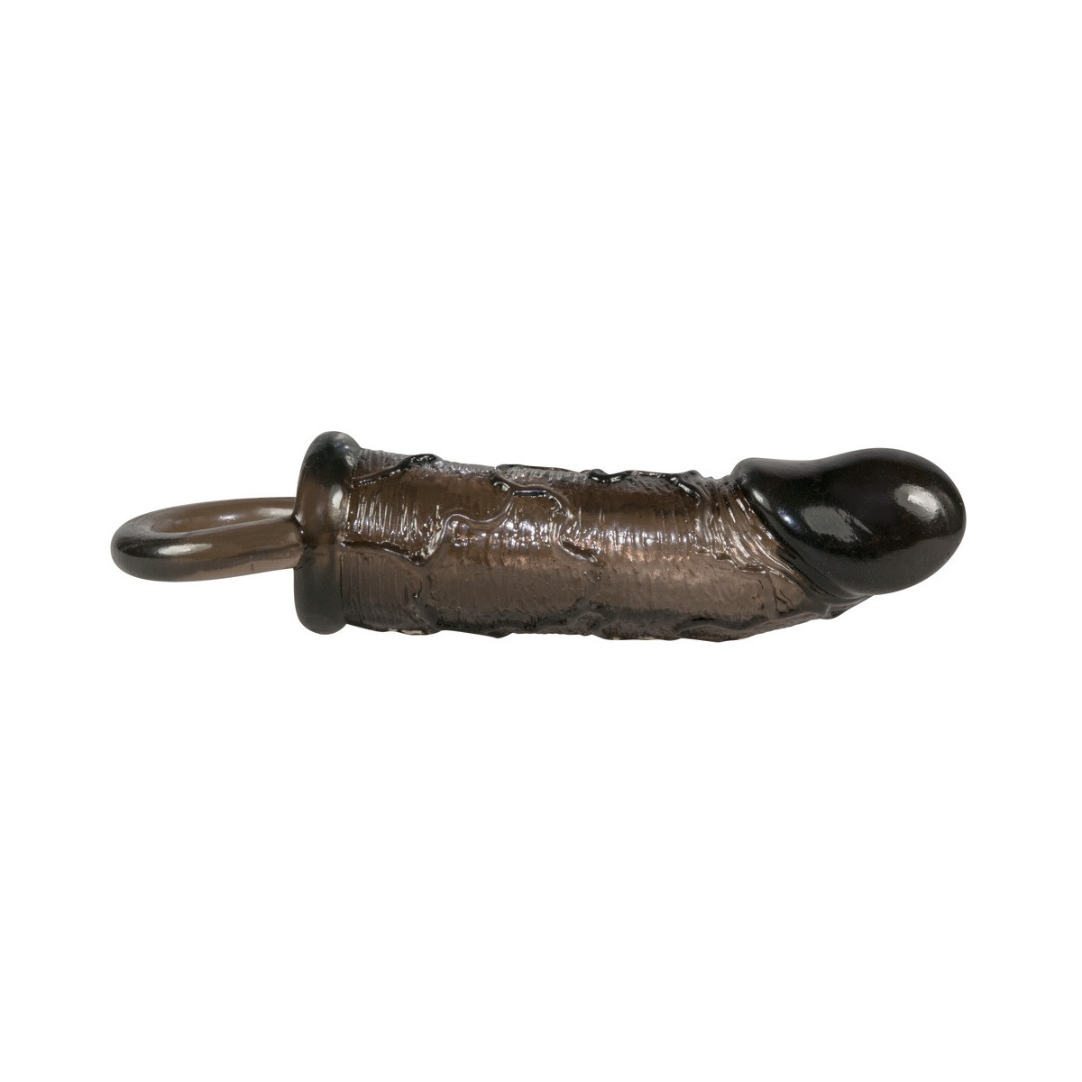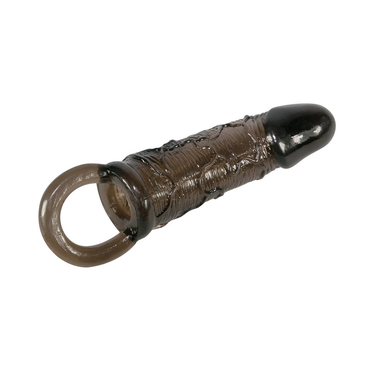 Guaina trasparente per pene fumé con anello flessibile per testicoli, forti venature e glande saldamente imbottito, che estende il pene di 3 cm. Lunghezza totale ca. 13 cm, profondità di inserimento ca. 10 cm. Ø guaina ca. 1,9 cm (estensibile). Ø anello testicolo ca. 2,9 cm. Materiale: TPE.
