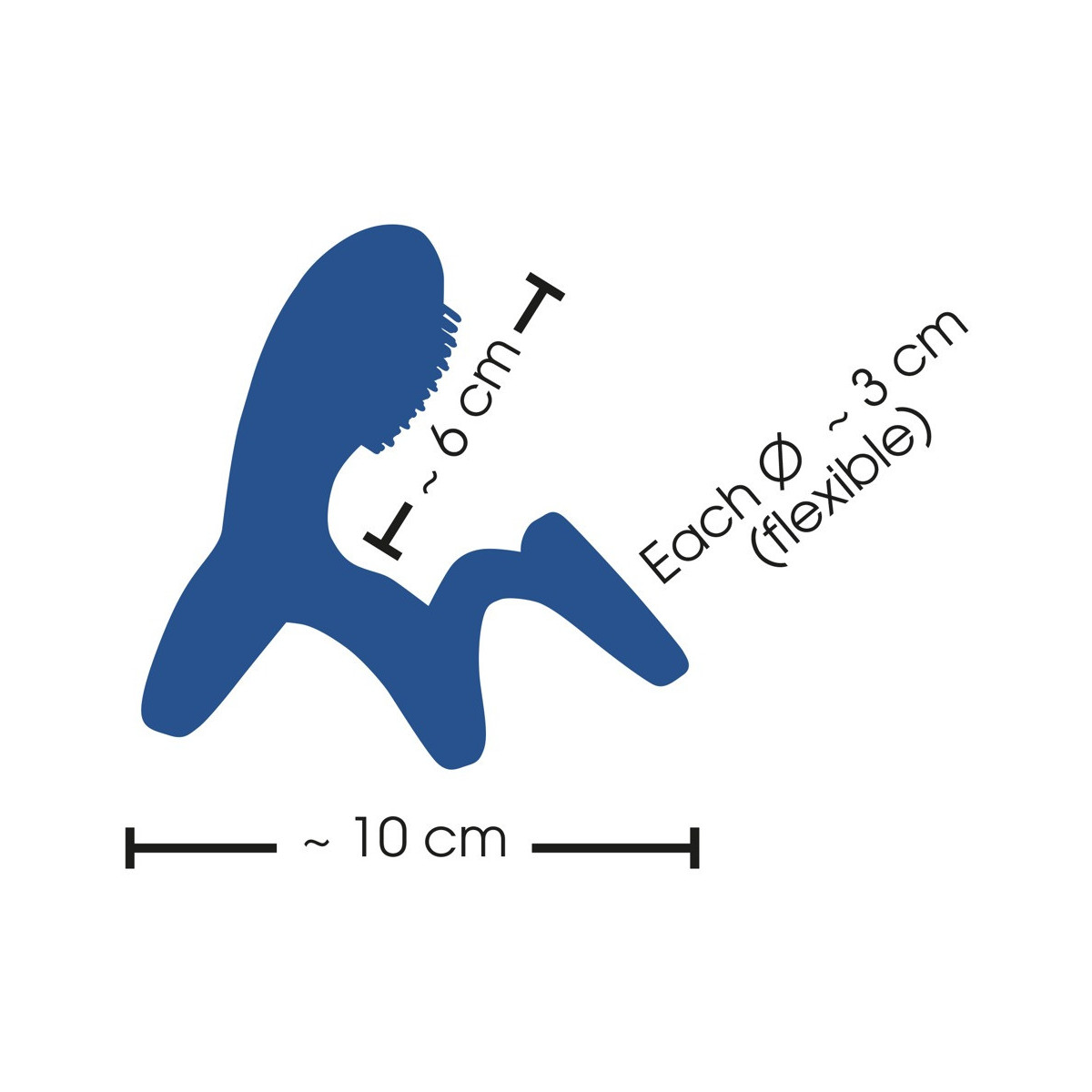 Lunghezza totale 10 cm, Ø 3 cm (estensibile). Silicone con rivestimento in PU.