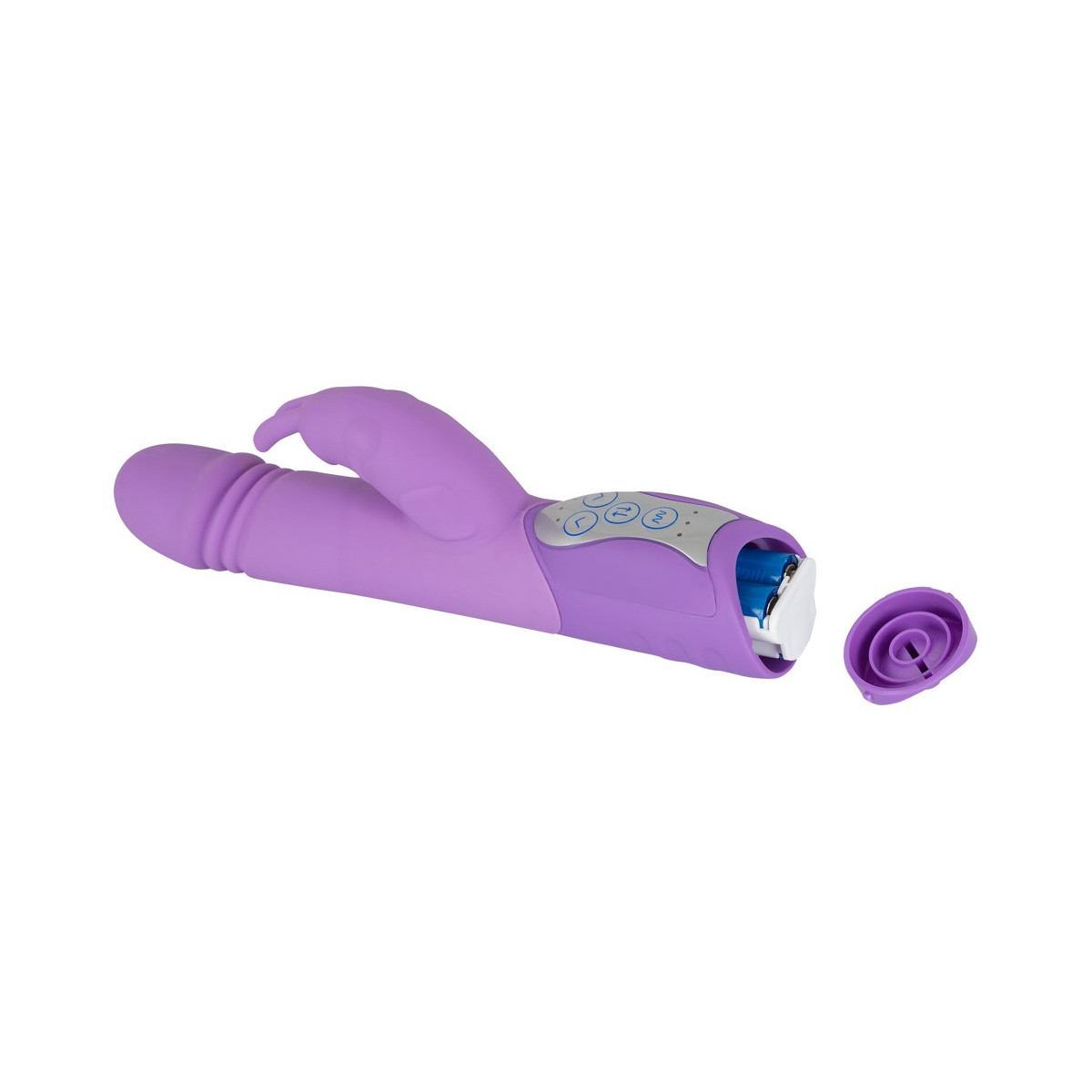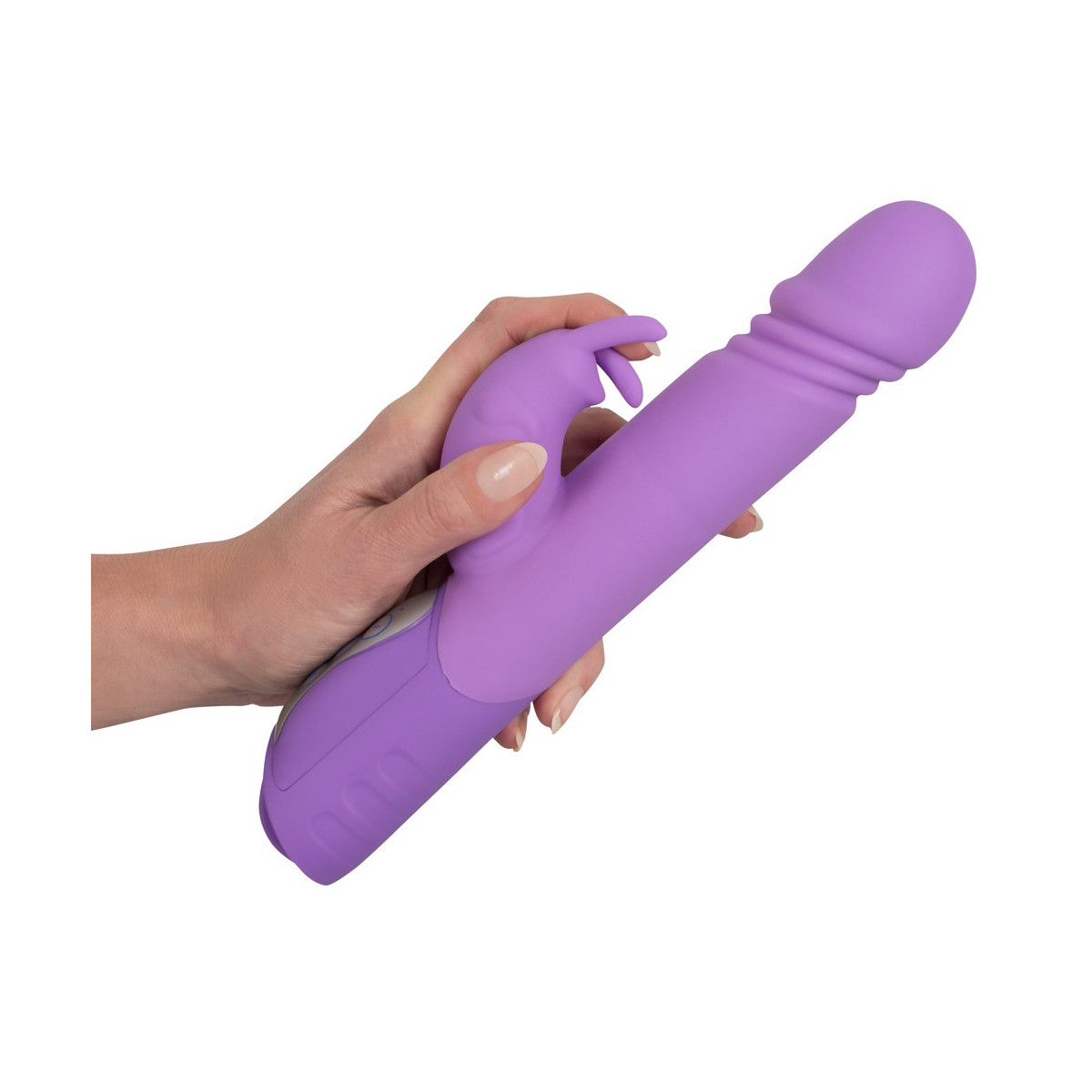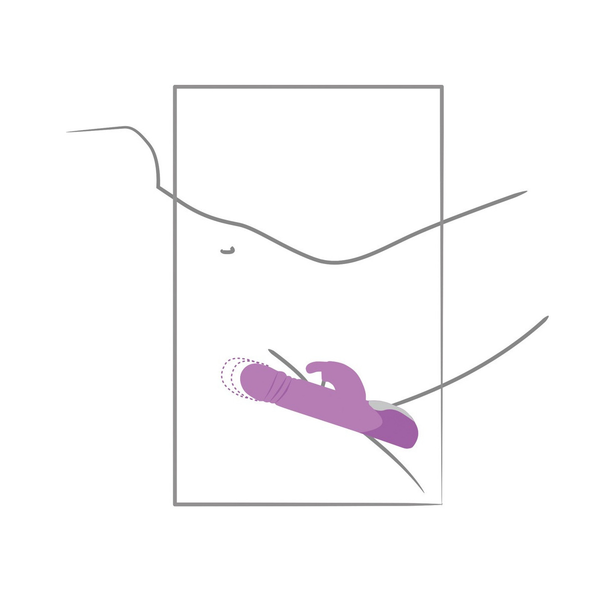 Questo vibratore rabbit viola con stimolatore clitorideo a forma di coniglietto con le orecchie mobili è una vera e propria centrale elettrica: coccola con 10 diverse modalità di vibrazione e un'eccitante funzione di spinta a 3 velocità. 3 scanalature che inducono al piacere sotto la punta.