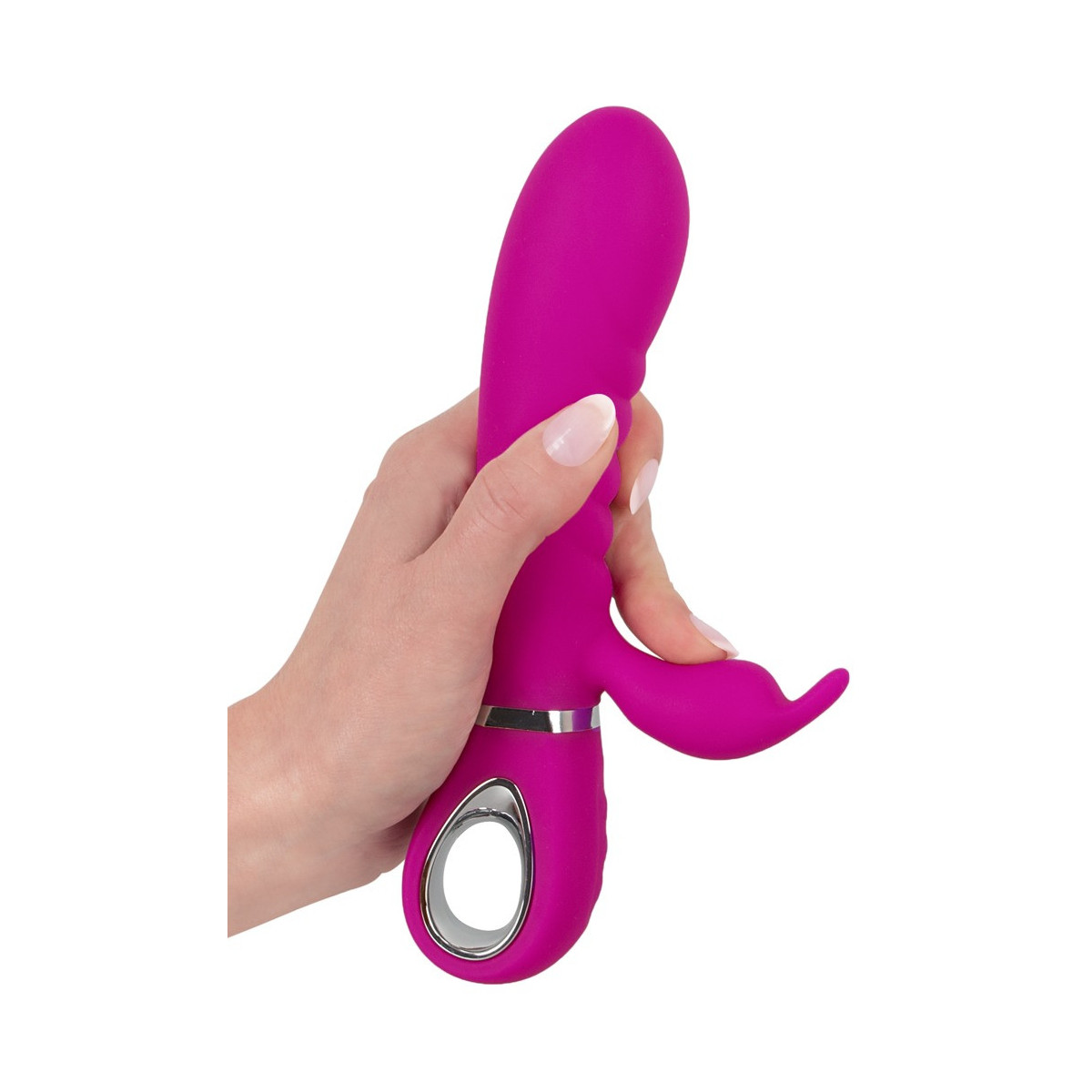 Vibratore estremamente flessibile con stimolatore del clitoride per una tripla coccola: Mentre l'asta flessibile con la sua caratteristica scanalatura di stimolazione massaggia intensamente la vagina, la testa del vibratore sporgente stimola il punto G e allo stesso tempo coccola il clitoride con vibrazioni formicolanti. 2 motori potenti, controllabili separatamente (uno nell'albero, uno nello stimolatore del clitoride) con 7 modalità di vibrazione, ognuno dei quali offre un piacere vario. Grazie alla funzione di memoria, il vibratore ricorda gli ultimi modi impostati e si riavvia alla successiva accensione. Questo tuttofare è realizzato in morbido materiale siliconico e fornisce una sensazione di pelle molto piacevole mentre si coccola. Grazie al pratico anello di tenuta il vibratore può essere guidato e controllato meravigliosamente. Poiché il vibratore è impermeabile, nulla ostacola il godimento del vibratore anche sotto l'acqua (nella vasca da bagno o nella doccia). Ricaricabile - Cavo di ricarica USB incluso. Compresa la borsa di stoccaggio di alta qualità.