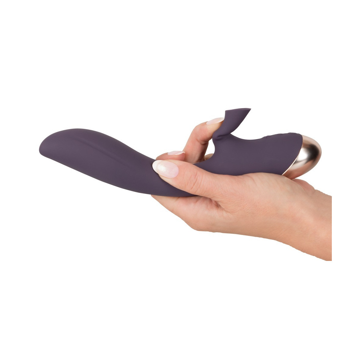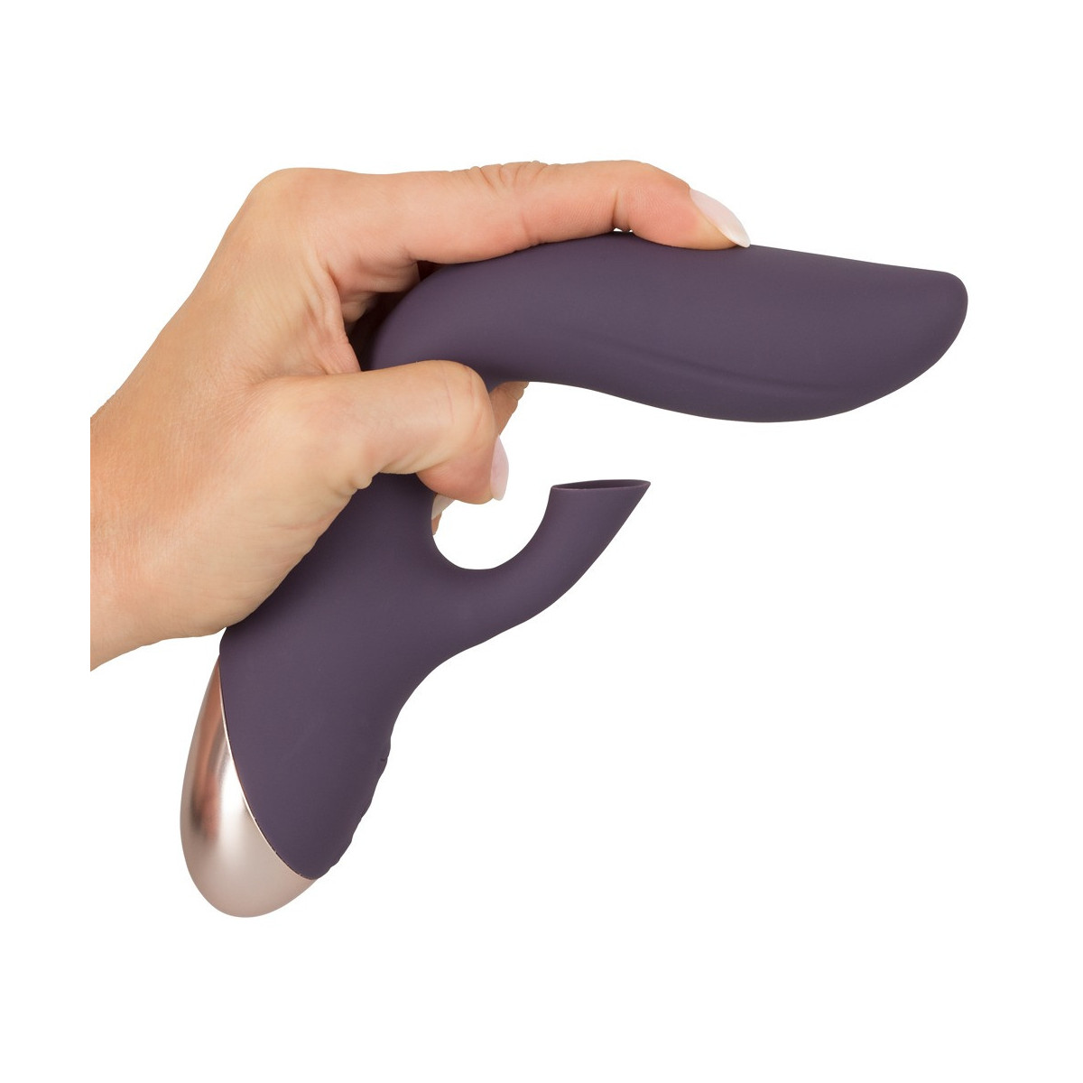 Questa meraviglia che succhia non si esaurirà presto! In 12 modalità diverse, la ventosa del clitoride stimola ampiamente, mentre il fusto leggermente curvo massaggia in modo eccitante la zona G in 12 modalità di vibrazione. Le due funzioni sono controllate separatamente all'estremità dell'asta, permettendo all'utente di trovare la sua esatta frequenza di piacere. Impermeabile. Cavo di ricarica USB incluso.