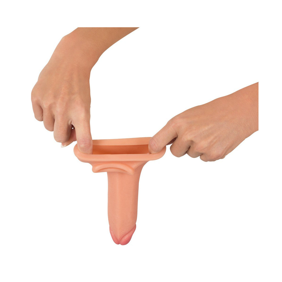 Guaina per il pene dal design naturale per ingrandire ed estendere il pene di 5 cm. La guaina realistica impressiona con il suo materiale particolarmente morbido e il glande pronunciato e le leggere venature sull'asta. Un'apertura per i testicoli fornisce una presa particolarmente sicura.