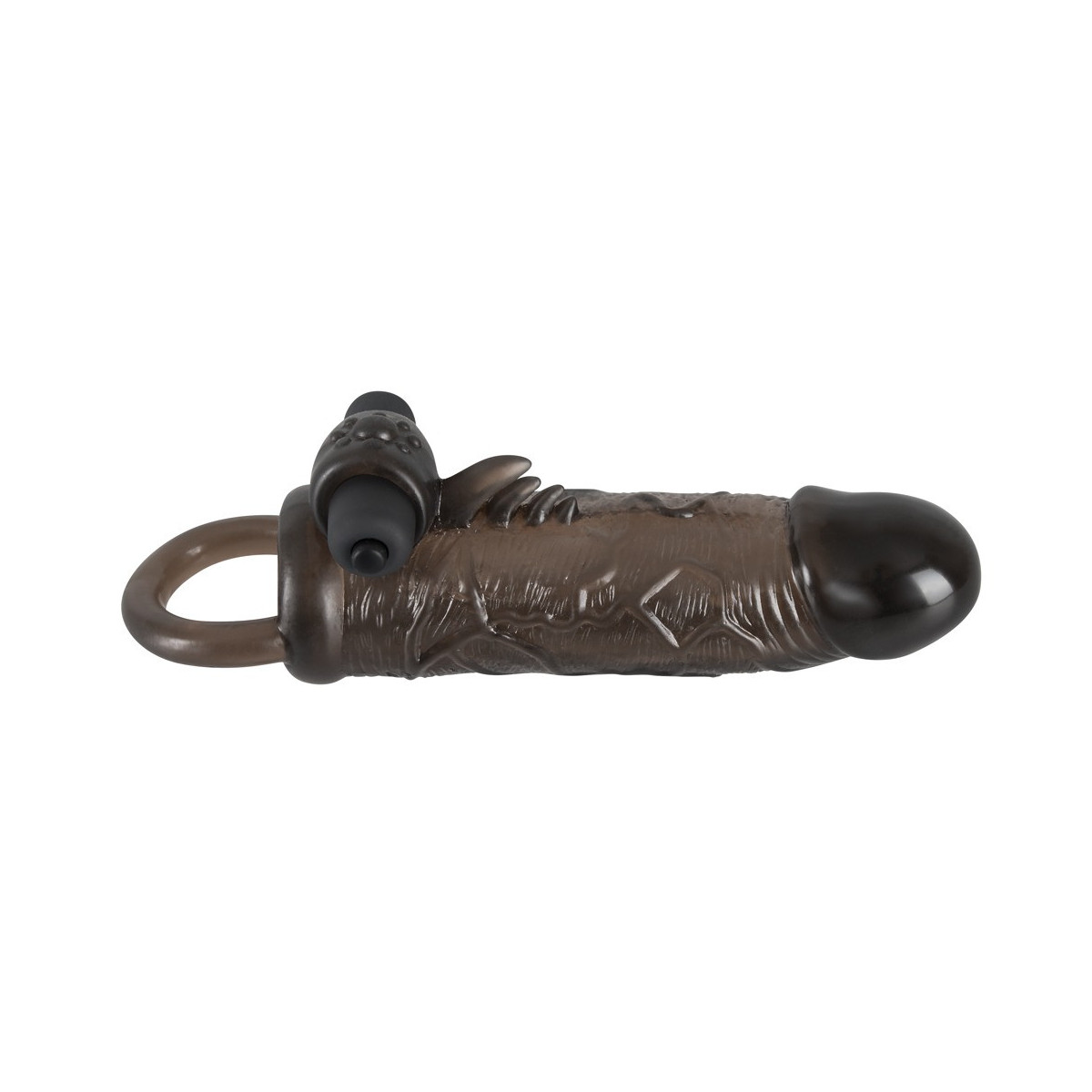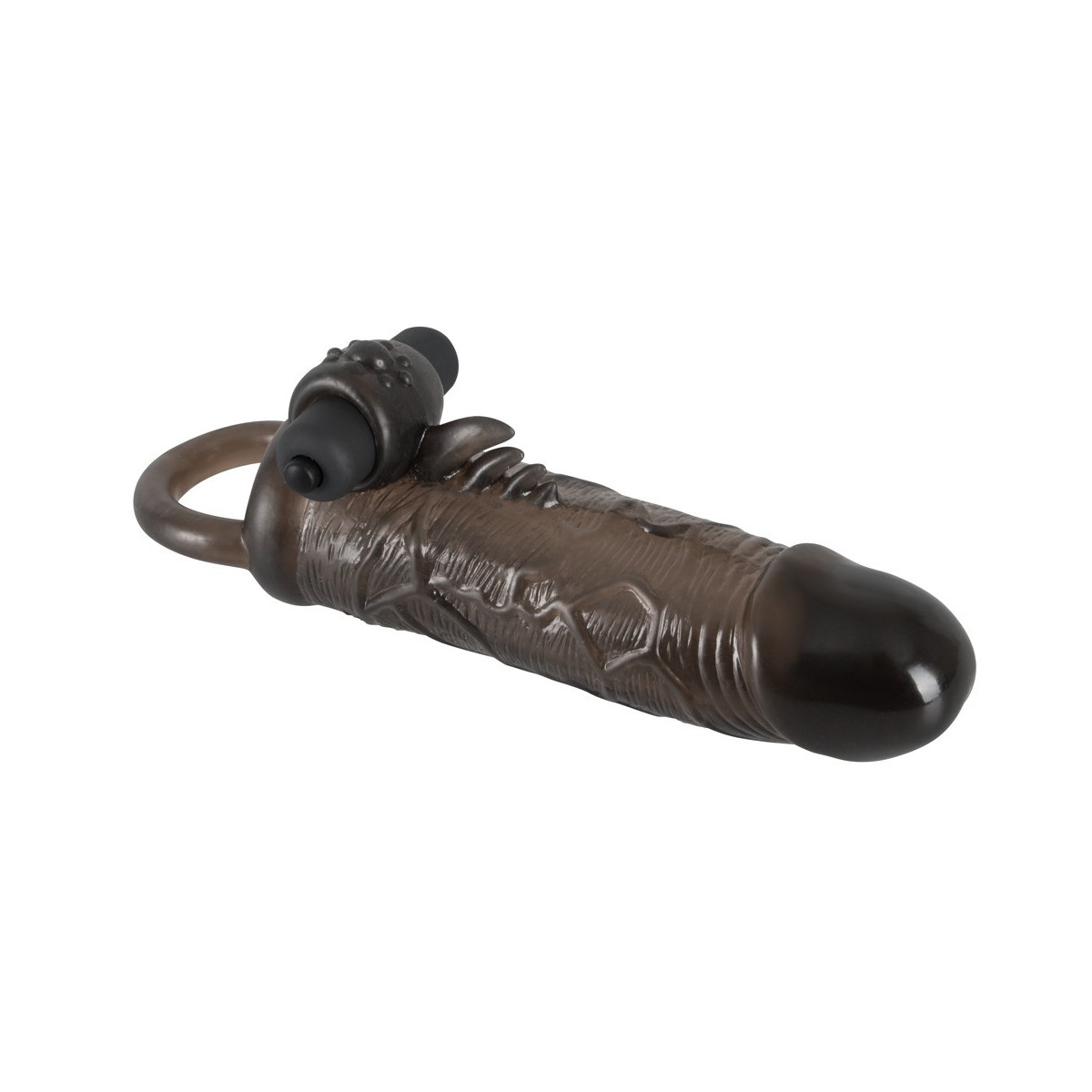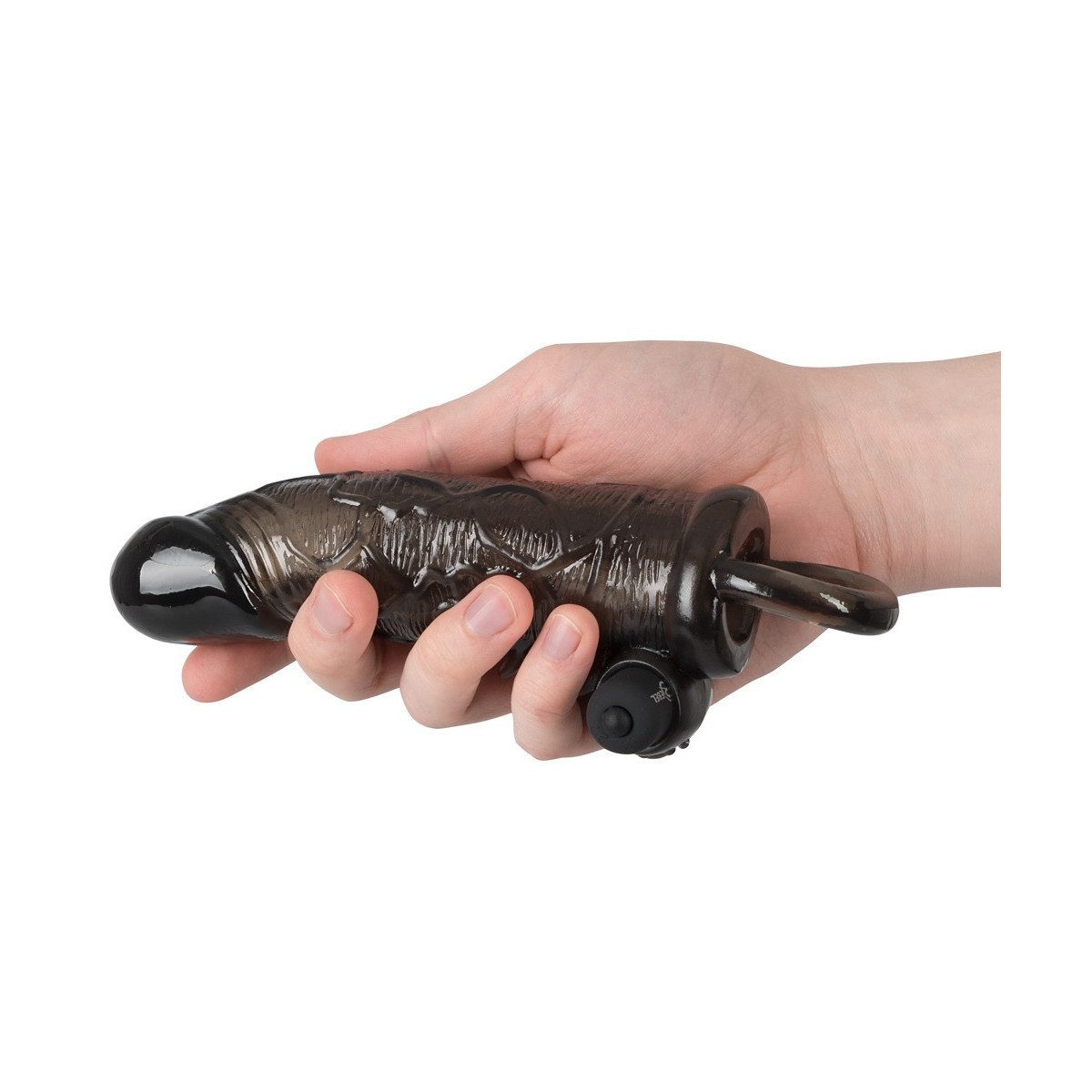 Questo copripene ispira con anello per testicoli e vibro-proiettile. Il coperchio, che è molto flessibile come l'anello ed è dotato di un glande sporgente e di venature pronunciate, si rovina con 4 piccoli rebbi di stimolo e un vano di inserimento nubbed per il Vibro-Bullet chiuso, che ha 10 diverse modalità.