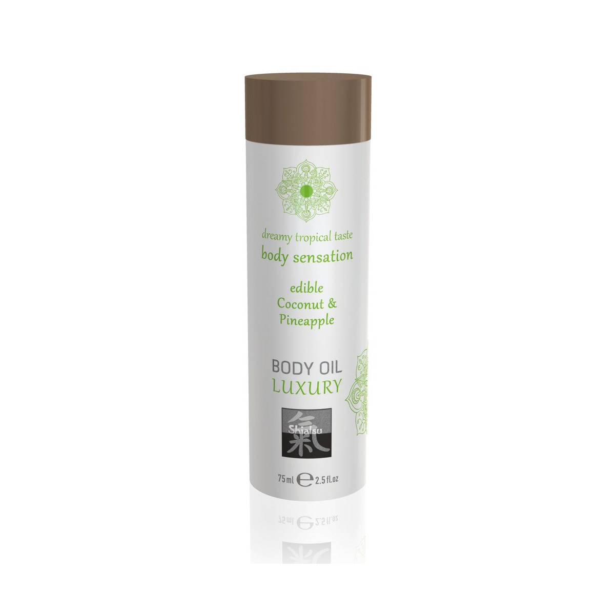 Olio da massaggio con profumo e gusto esotico di cocco e ananas che coccola i sensi e risveglia gli stati d'animo erotici. L'olio da massaggio è perfetto per i giochi orali e le esplorazioni. 75 ml.