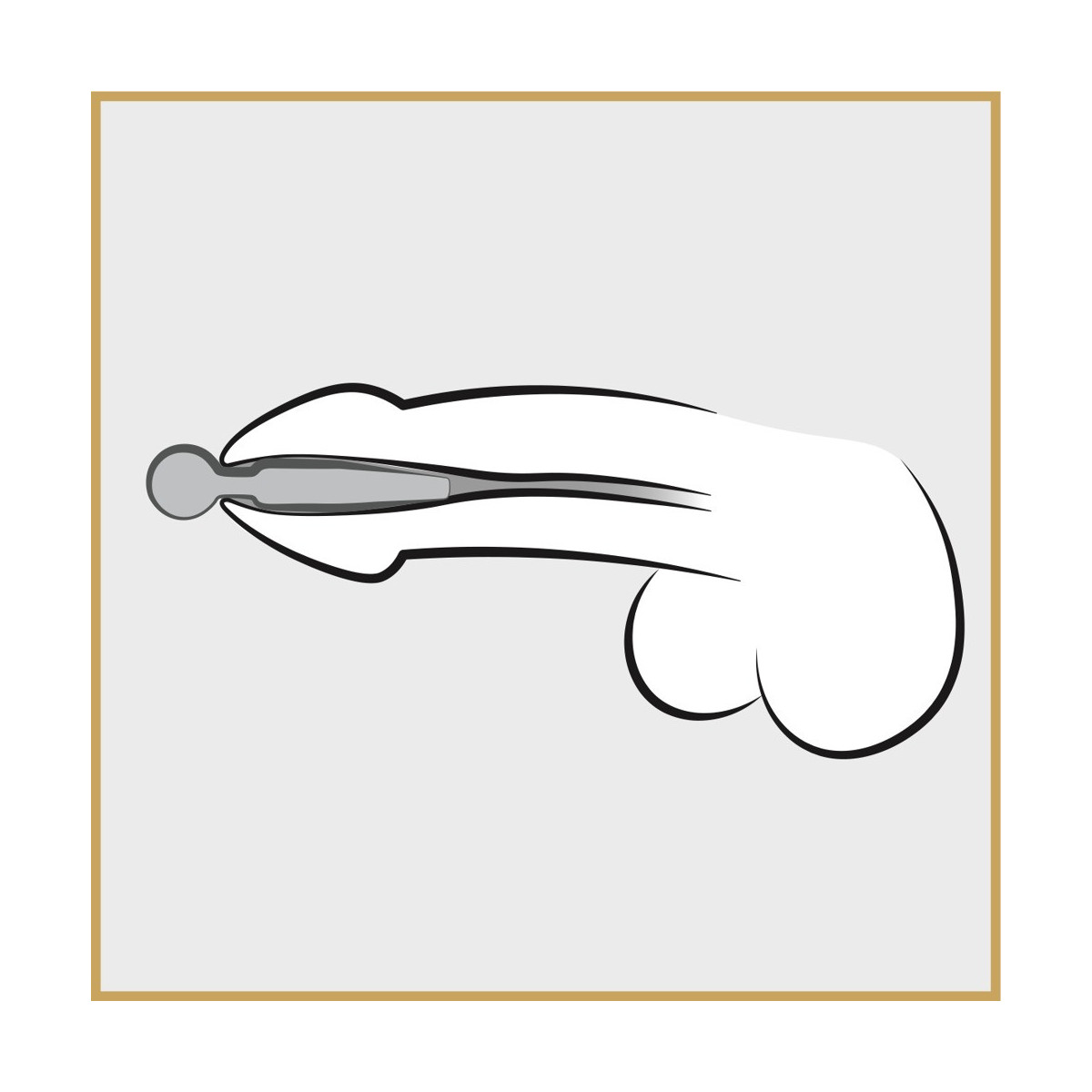 Tappo per il pene lungo 6,7 cm, profondità di inserimento 5,2 cm, Ø 0,5-1 cm. 34 g. Acciaio inossidabile.