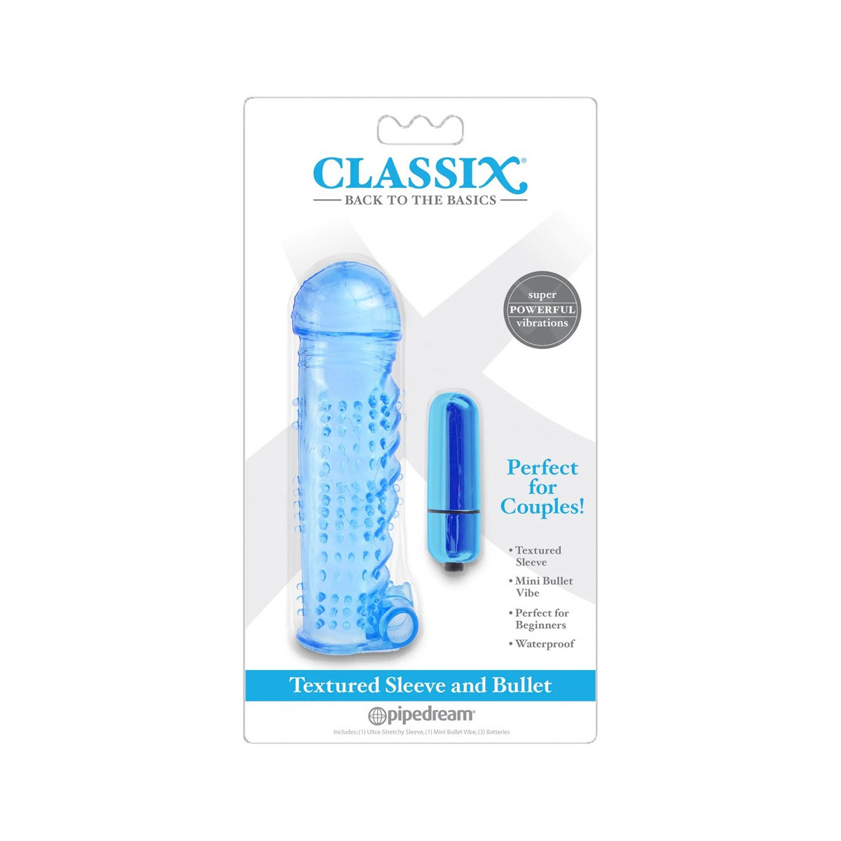 Classix - Guaina per il Pene con Vibrazione, Perfetto per Coppie, Azzurro, Batterie Incluse, Stimolante