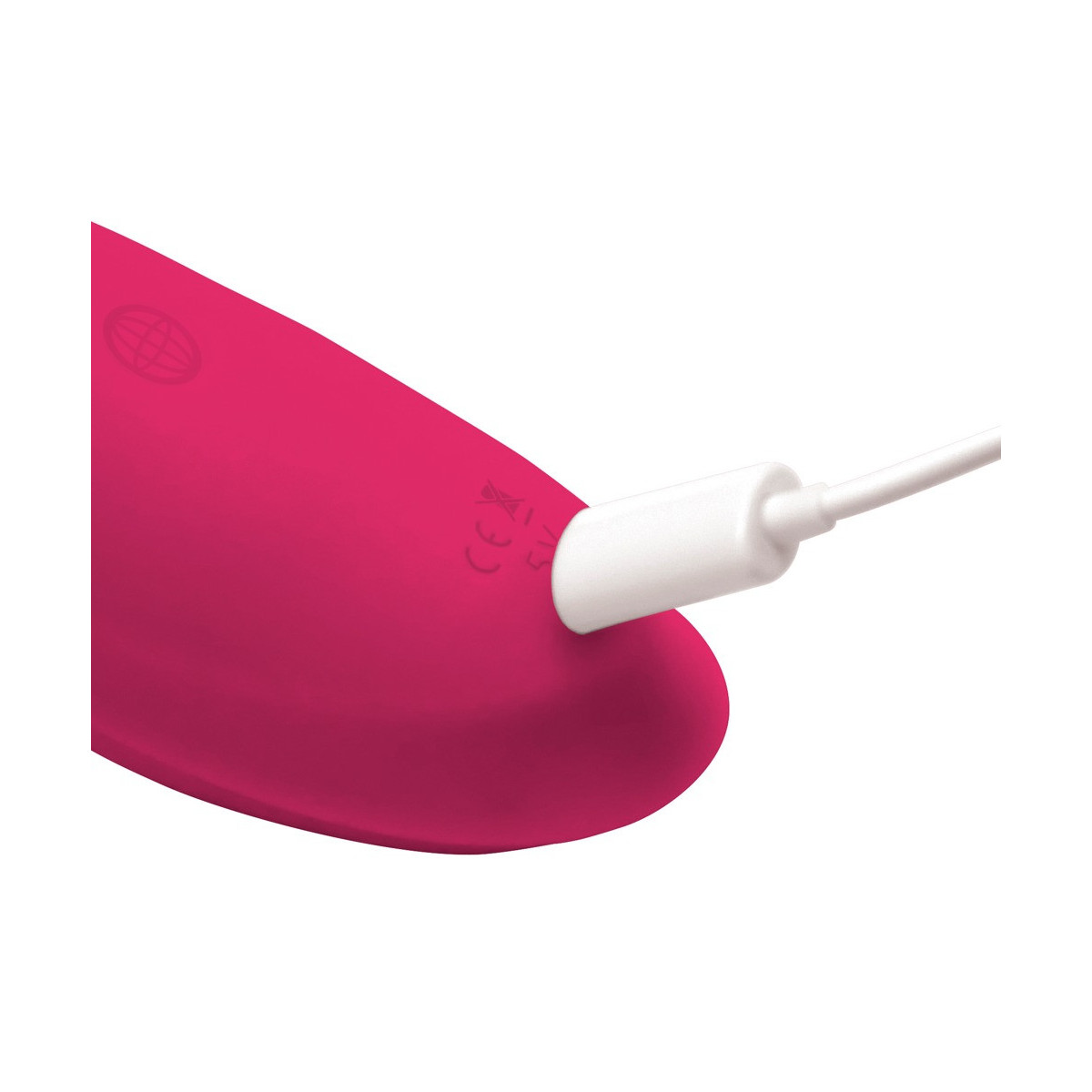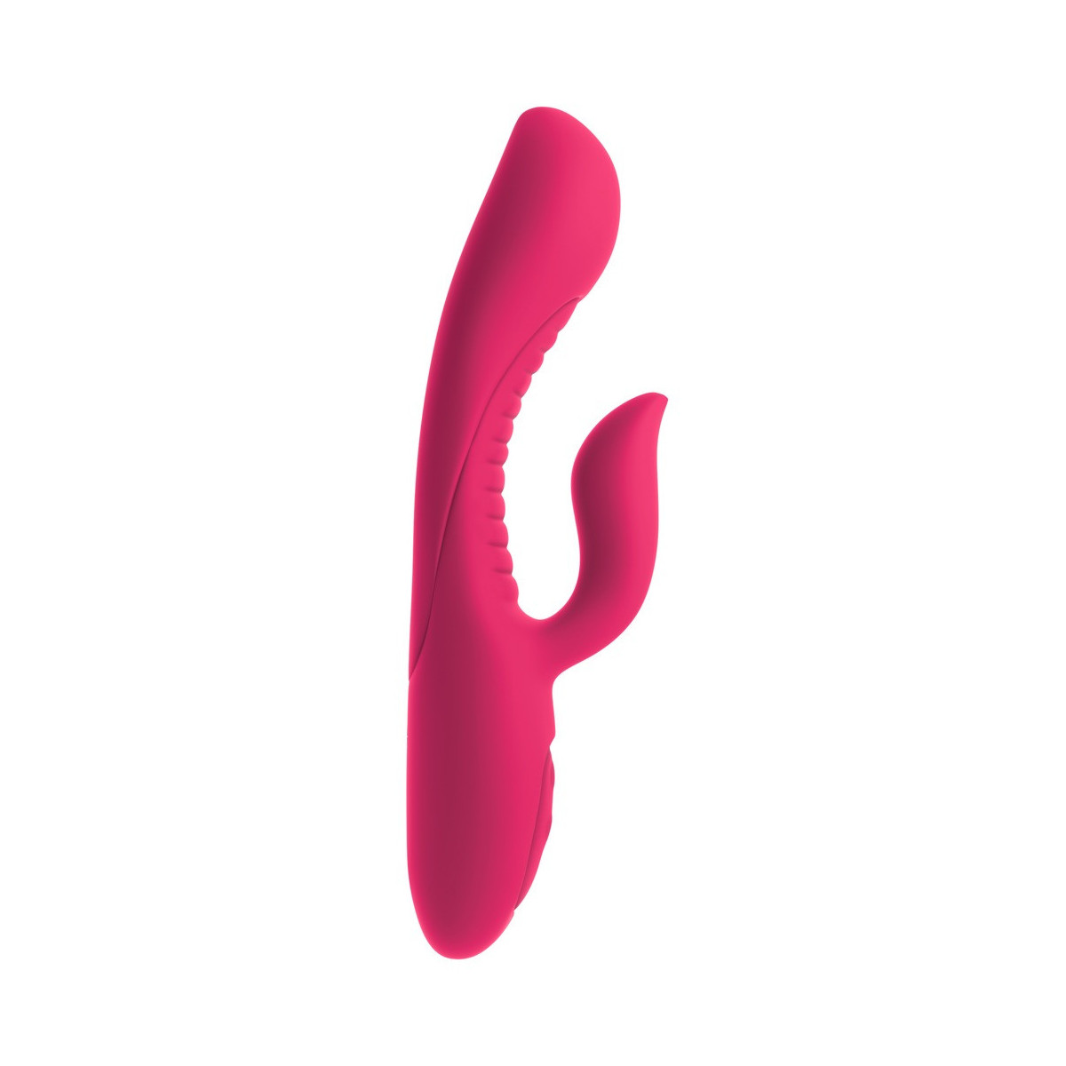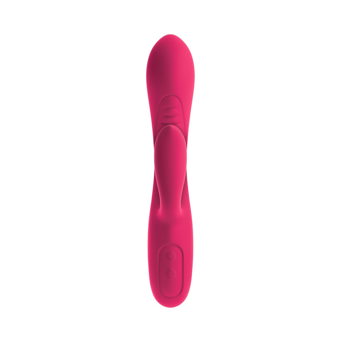 Vibratore a coniglio con punta curva del punto G e braccio di stimolazione del clitoride. Permette la stimolazione simultanea del clitoride e del punto G in 9 modalità di vibrazione e con 2 potenti motori. Comando semplice e intuitivo con la semplice pressione di un tasto. Essendo impermeabile, non ha paura di una visita al bagno o alla doccia. Cavo di ricarica USB incluso.