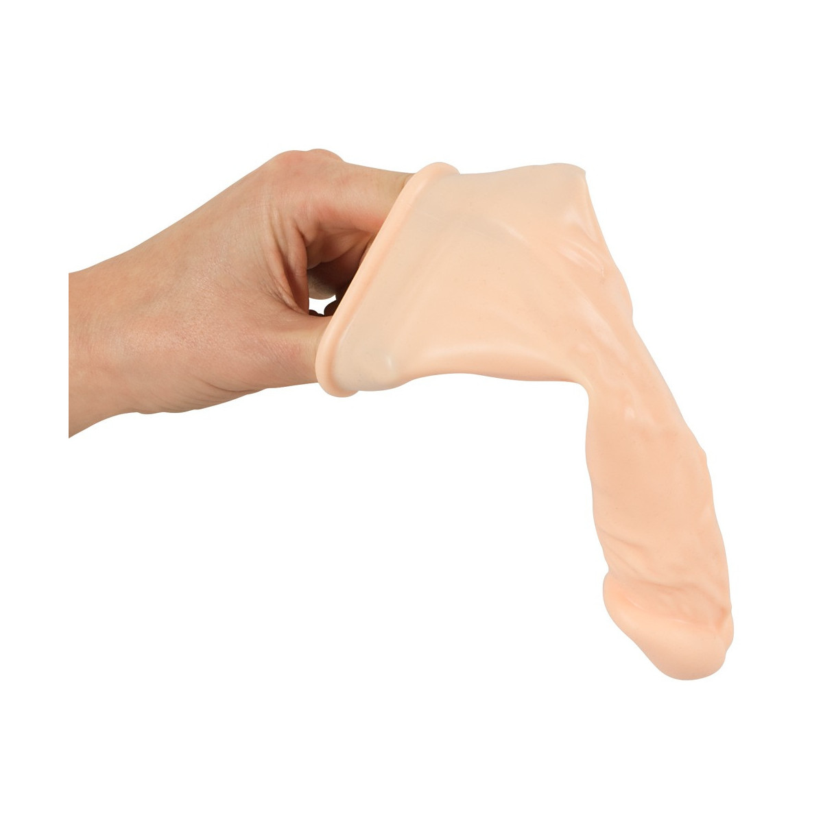 Copripene in materiale super morbido. Allunga il pene di 2,5 cm. Con glande e vene pronunciate - liscio come la seta all'interno. La manica è piacevolmente flessibile ed elastica.