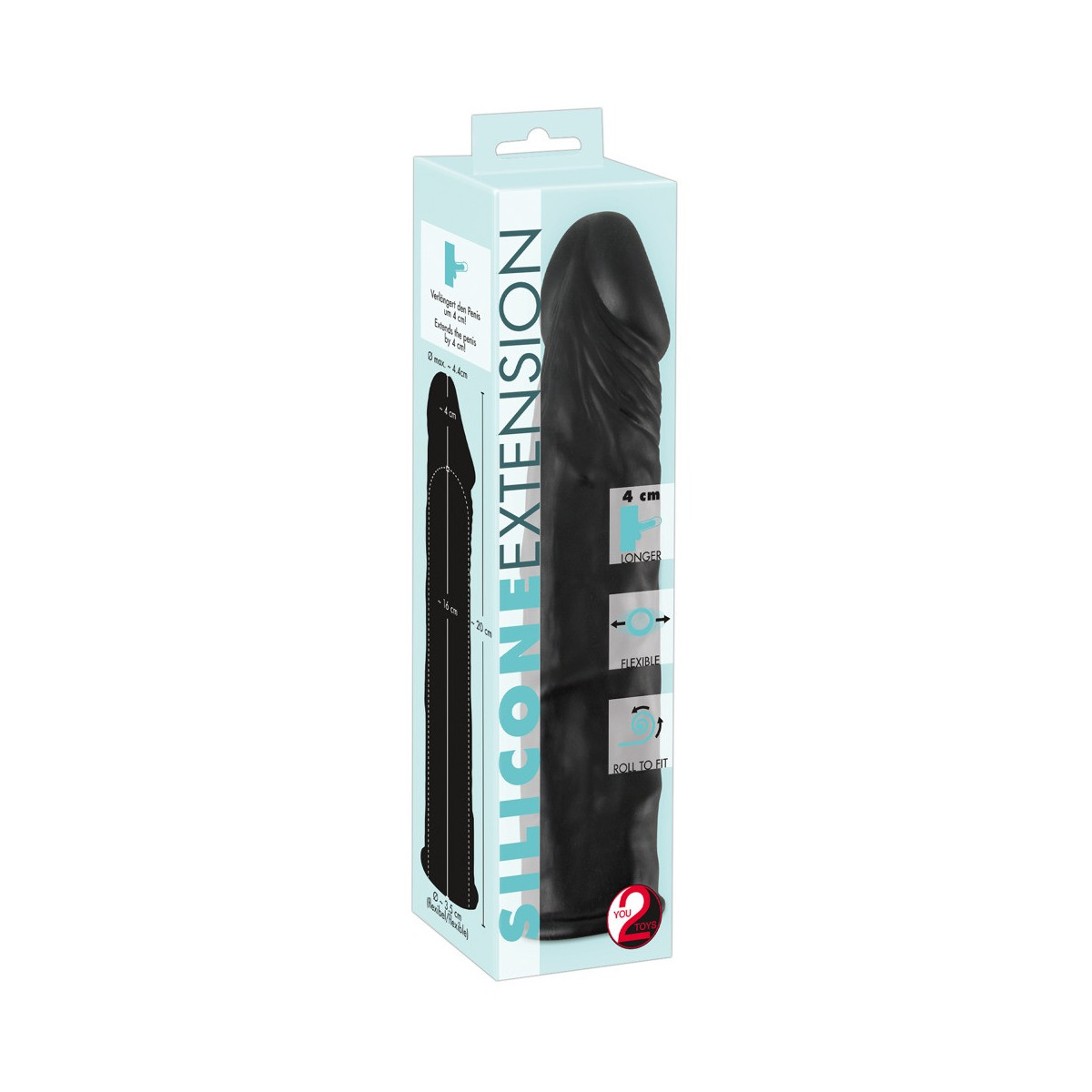 You2Toys - Guaina Fallica, Stimolante, Potenziante, Flessibile, Lungo, Nero, 20 CM