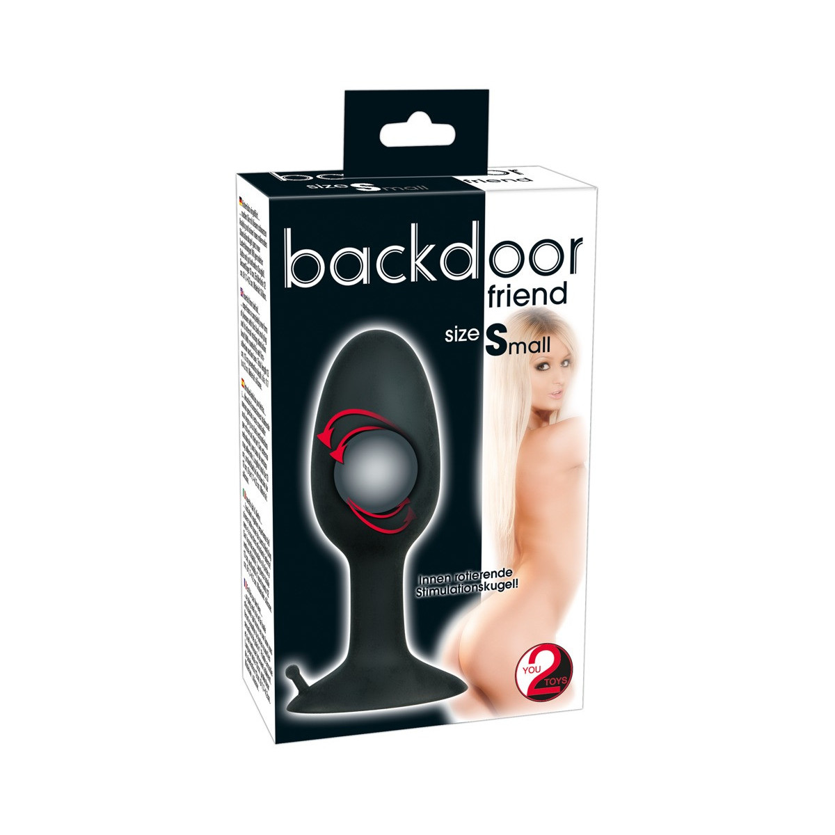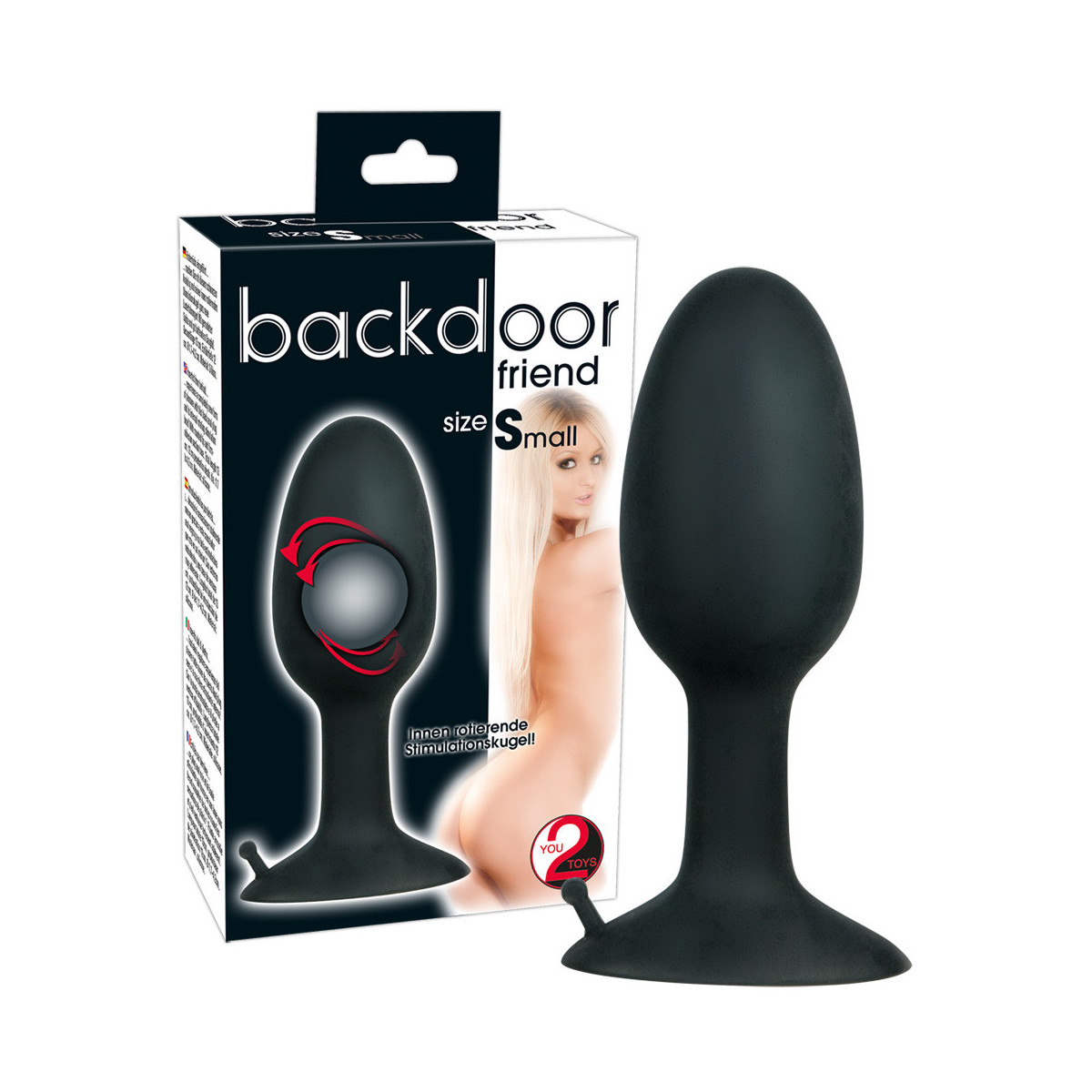 Backdoor Friend - Plug Anale in Silicone, Sfera di Stimolazione, Ventosa, Nero