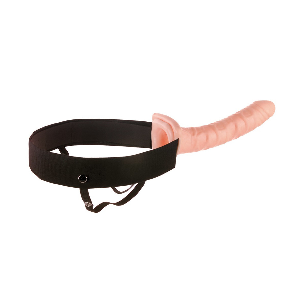 Dildo naturale cavo con elastico. Indossato sul pene per più lunghezza e circonferenza o per l'ancoraggio del sesso bollente. Cinturino regolabile.