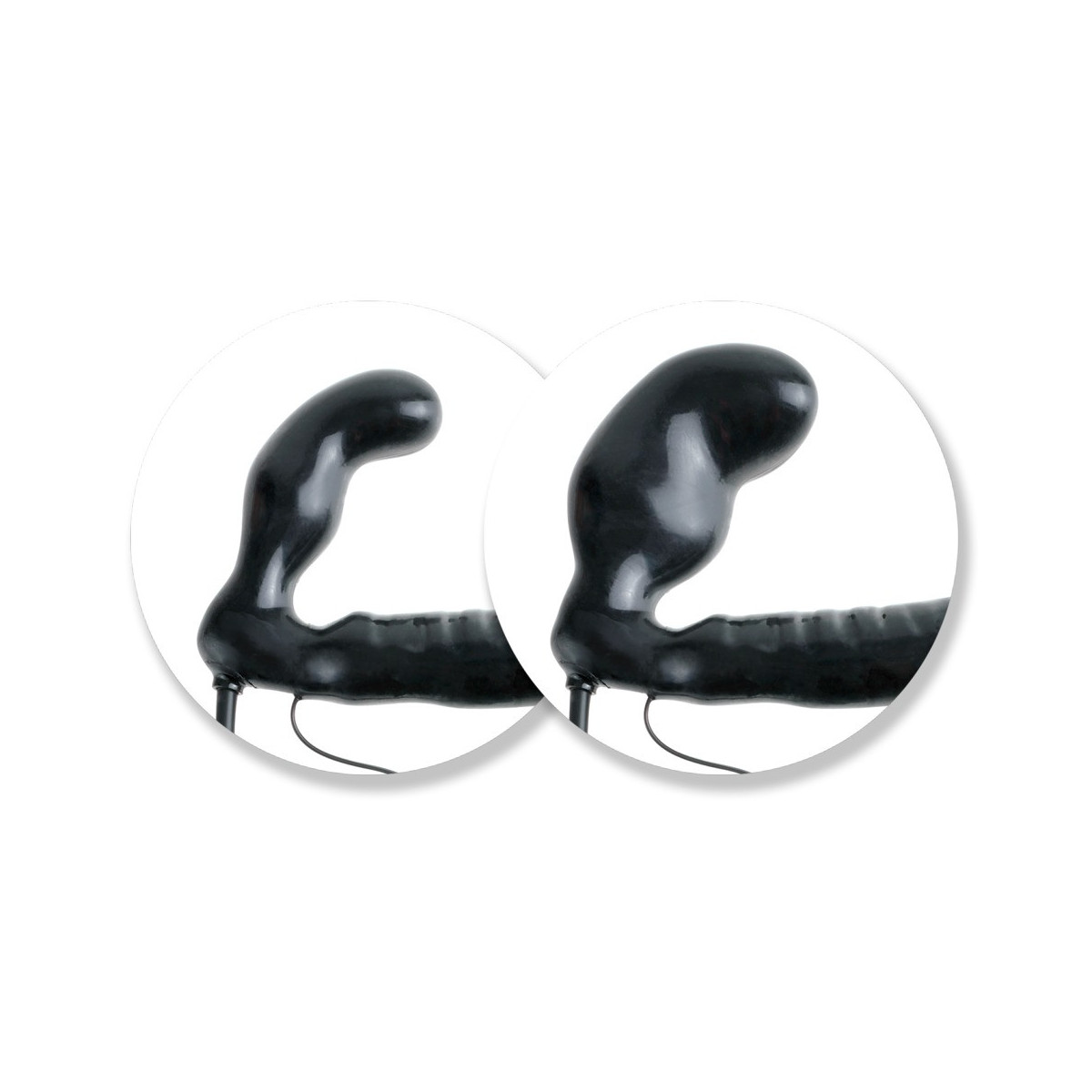 Dildo corto 12 cm, Ø 3,5 cm (può essere gonfiato più grande). Dildo lungo 16,5 cm, Ø 3,3 cm. PVC, TPR, ABS.