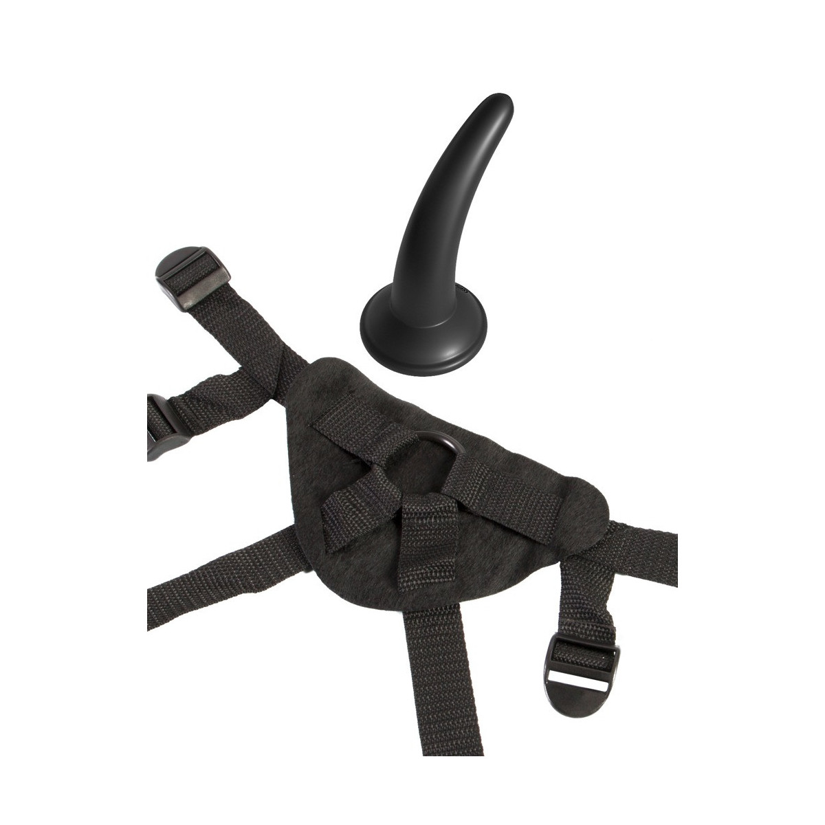 Strap-on con dildo rimovibile. Dildo curvo ideale con base di aspirazione - può essere usato anche da solo e anche a mani libere. Può essere inserito nella parte anteriore della cinghia con l'aiuto dell'anello - qualsiasi altro dildo/vibratore con una base di aspirazione può anche essere inserito nella cinghia. La comoda cintura a strappo è regolabile per una vestibilità antiscivolo.