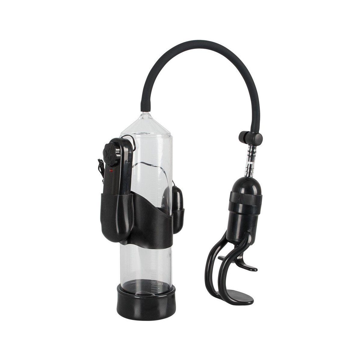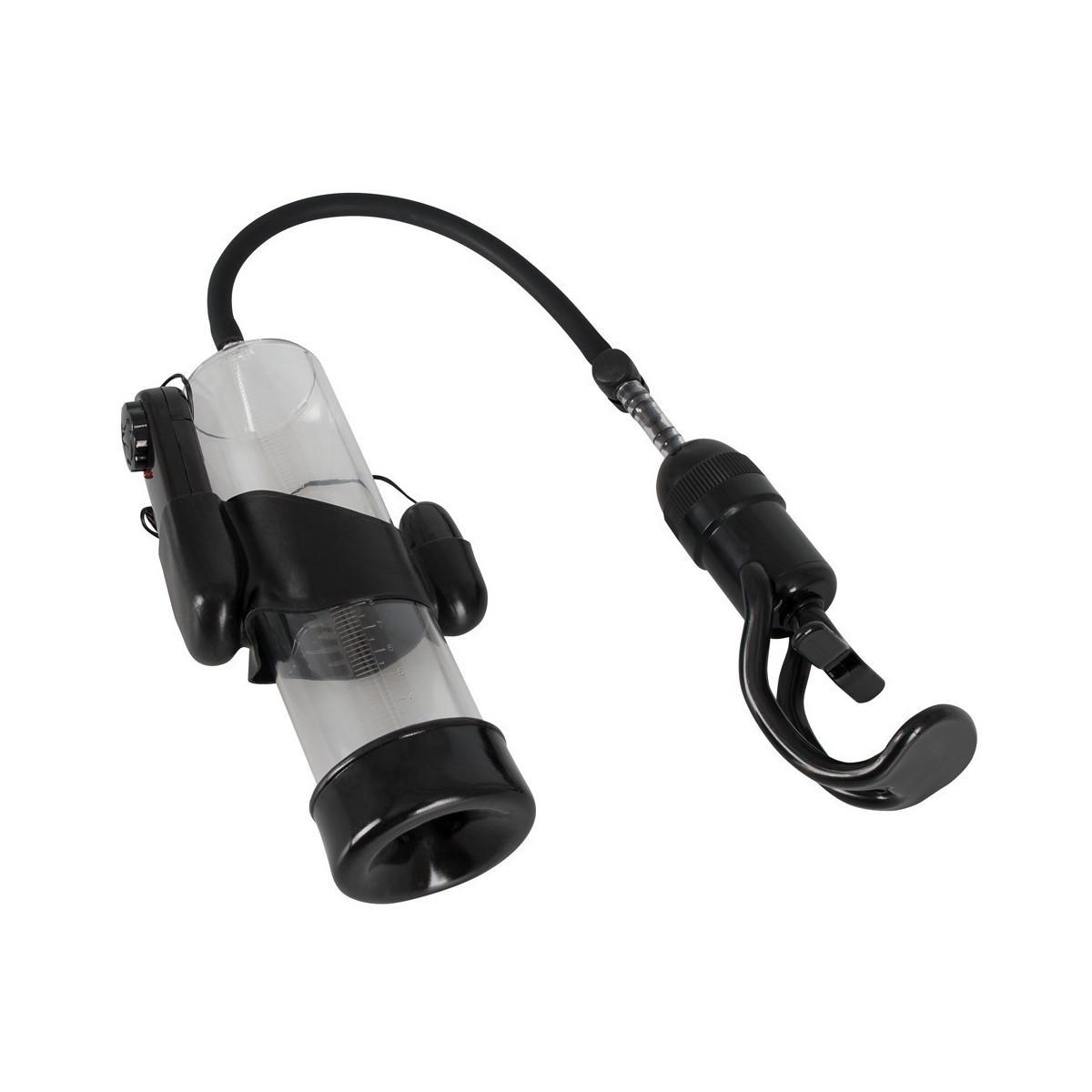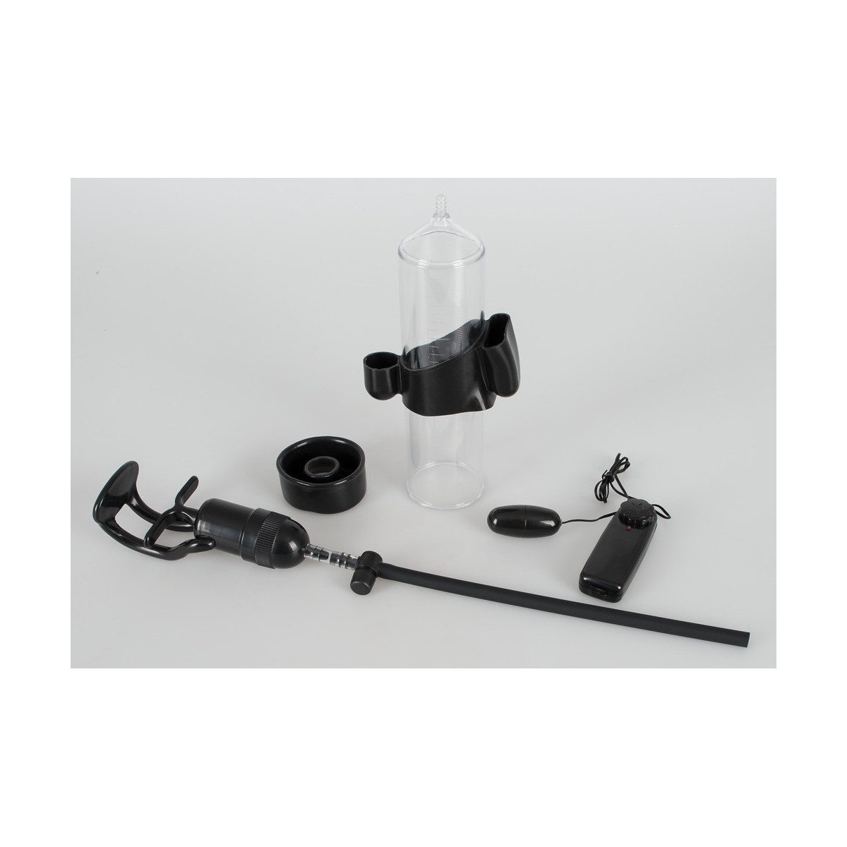 Il pene lubrificato viene inserito nel cilindro trasparente (con scala di misurazione di 20 cm!) e per mezzo della pratica pompa a una mano si crea un vuoto efficace in modo rapido e confortevole, che fa gonfiare il pezzo migliore fino alla sua massima dimensione e forma. Con la vibrazione attivata, l'allenamento è due volte più divertente! Il Vibrobullet per la vibrazione a più velocità può essere rimosso dal manicotto elastico sul cilindro insieme all'unità di controllo e può essere utilizzato anche da solo, ad esempio per i preliminari. Pompa a una mano con valvola di pressione di sicurezza.