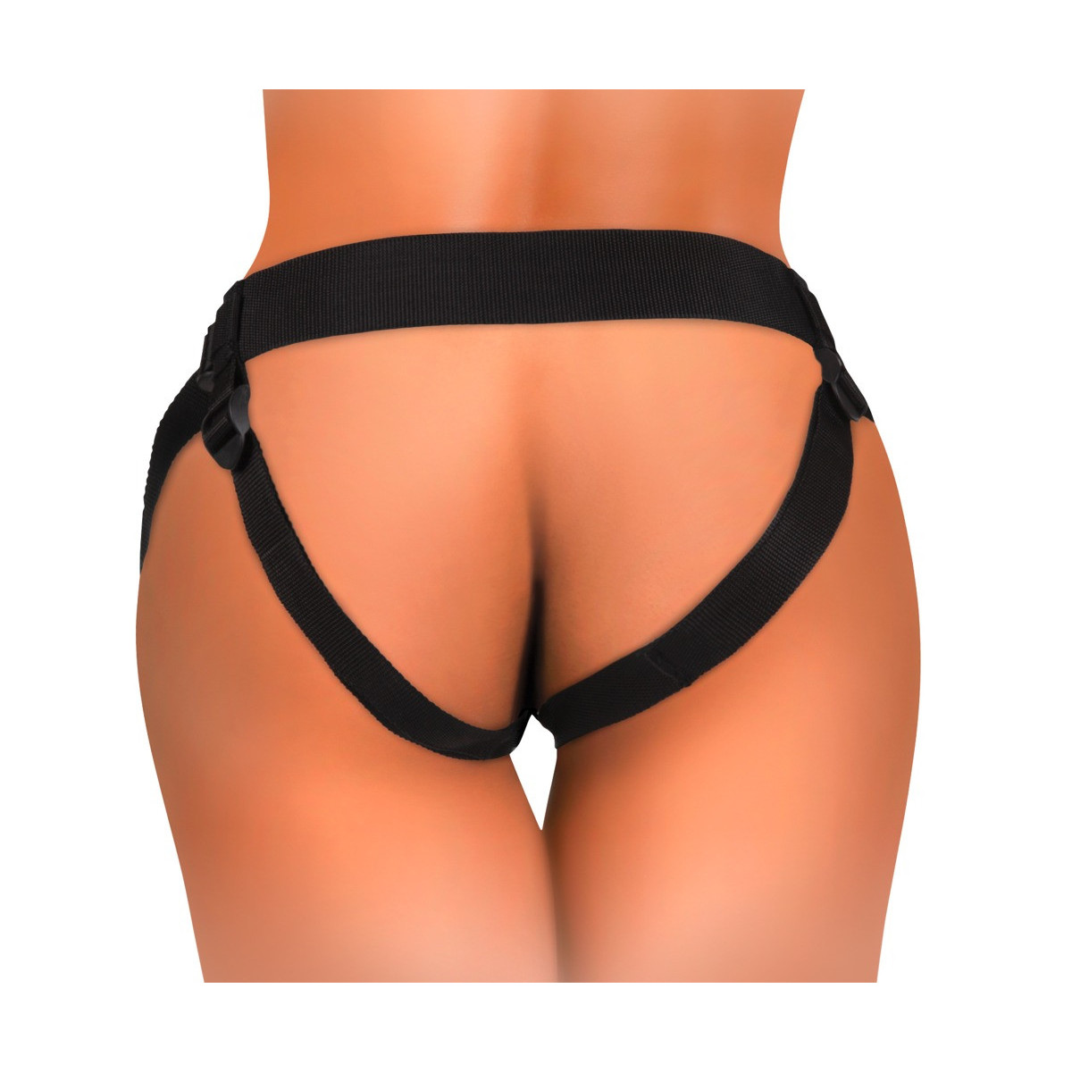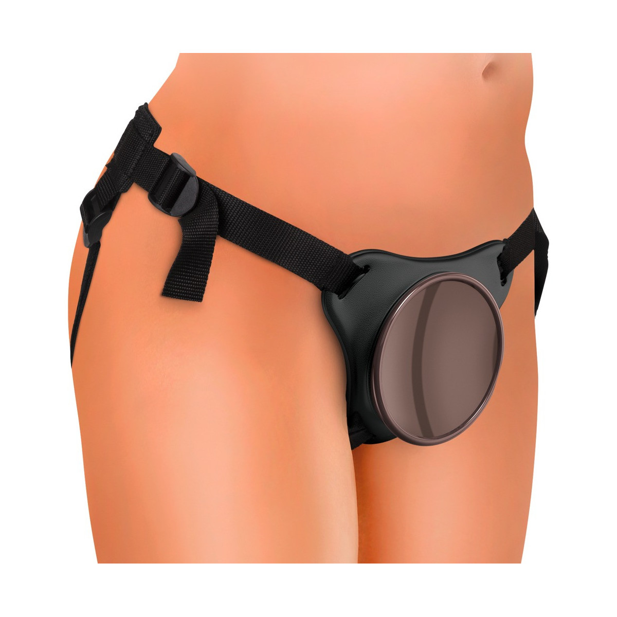 Il semplice sistema strap-on si basa sulla piastra del corpo anatomicamente curva con incavo di aggancio, in cui il piede di aspirazione del dildo è fissato/agganciato a prova di bomba e lo tiene in una posizione di spinta (Push & Play). La piastra del corpo morbidamente imbottita distribuisce la pressione in modo uniforme sulla zona pelvica, in modo da evitare una pressione puntuale e spiacevole. Le robuste cinghie larghe sono regolabili nella vestibilità con cursori in plastica per una vestibilità ferma e confortevole. Qualsiasi altro vibratore/dildo convenzionale con piede a ventosa può anche essere attaccato al/al body dock.