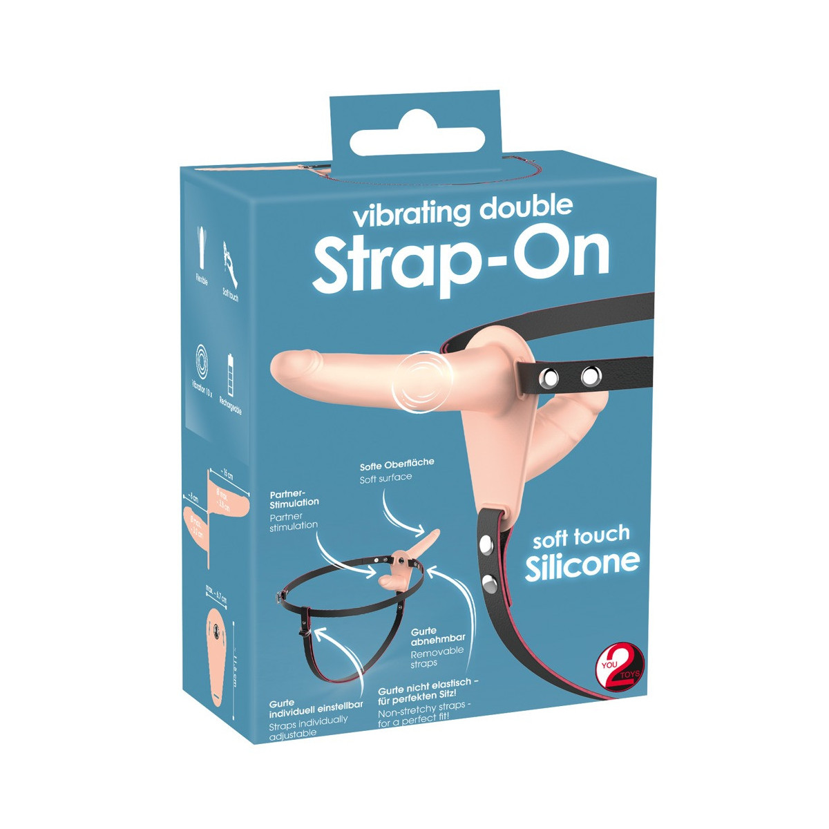 You2Toys Vibrating Double Strap - Strap On con Vibrazione, Dildo Realistico Doppio, Ricaricabile