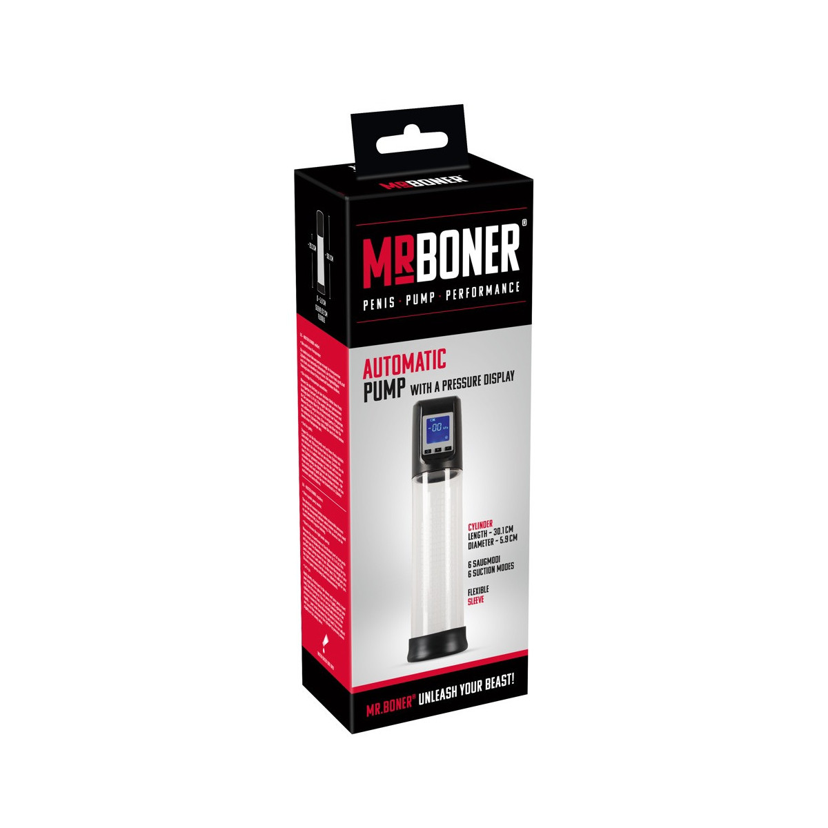 Pompa per il pene completamente automatica con 4 modalità di aspirazione. Un display digitale con tempo e vuoto in mbar offre la perfetta possibilità di controllo. Inoltre, le singole modalità di aspirazione vengono visualizzate in una scala peniena da piccola a grande. Con design diamantato antiscivolo sul cilindro e manicotto rimovibile per una facile pulizia. Ricaricabile con cavo USB incluso.