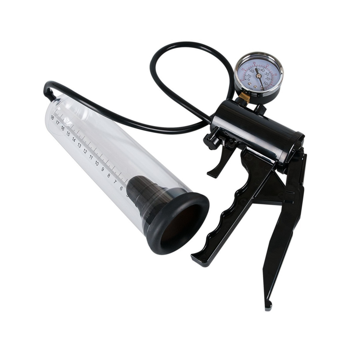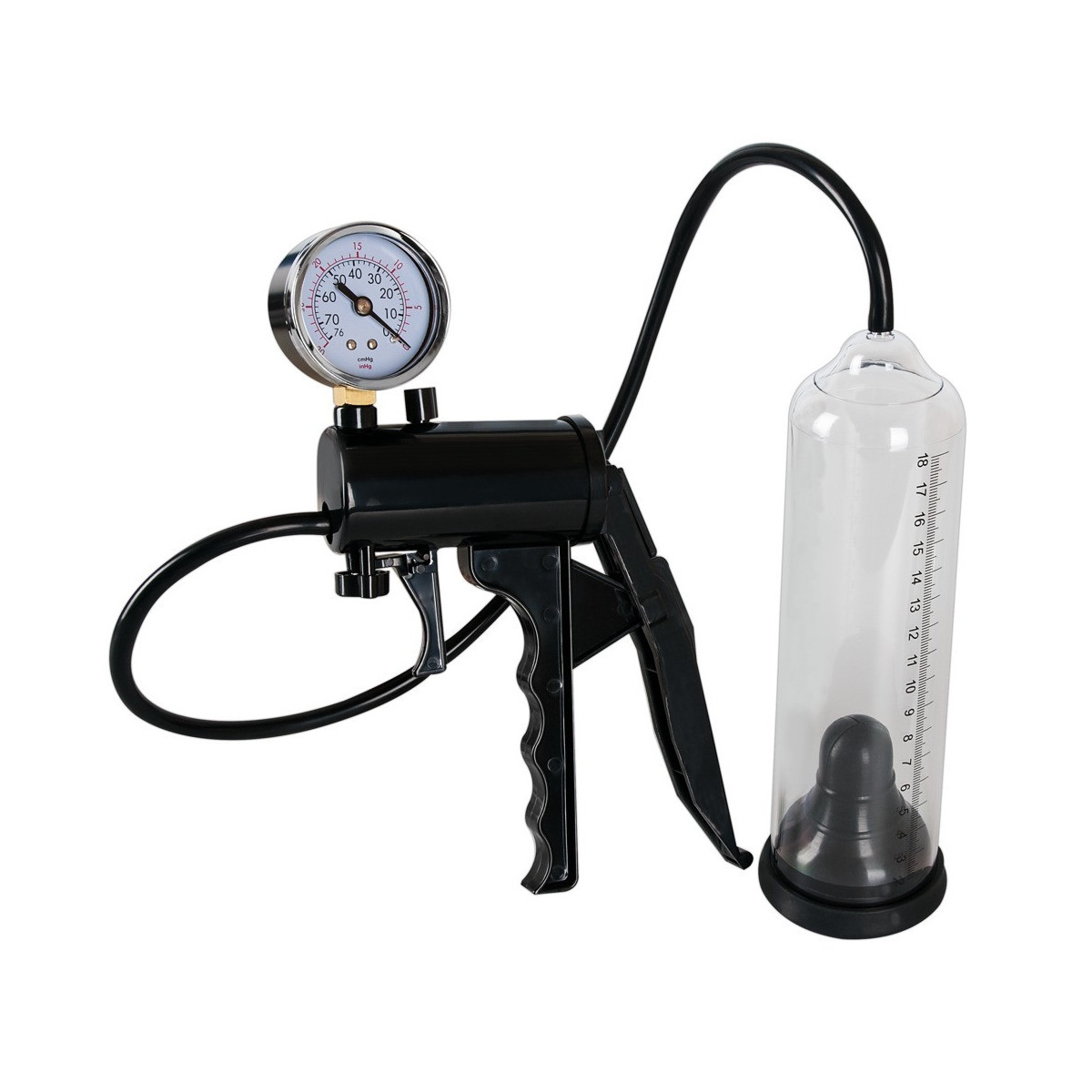 Duro & potente - questo nome si addice perfettamente a questa pompa, perché rende il vostro „pezzo migliore“ duro e potente! La maneggevole pomba con impugnatura a forbice garantisce un comodo aumento dell‘efficace vuoto, che potete regolare secondo le vostre esigenze - tutto può essere letto sull‘indicatore della pressione. Lunghezza complessiva cilindro di pompaggio ca. 32 cm, con scala di misurazione fino a 21 cm, Ø 5 cm. Nero/trasparente. Materiale: ABS, PVC, silicone, metallo.