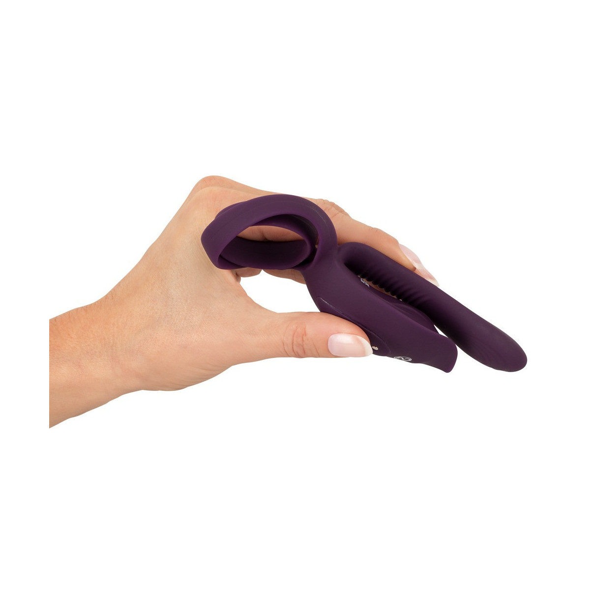 Il RC Couple's Vibrator 2 di Couples Choice combina un anello pene/testicolo con un vibratore molto flessibile e uno stimolatore clitorideo. Gli anelli vengono infilati sul pene e sui testicoli in modo che il vibratore piatto, con la sua texture stimolante, si annidi sopra il pene. Questo aumenta la circonferenza del pene ed entrambi godono delle vibrazioni impegnate durante il sesso. Inoltre, l'anello per il pene sostiene l'erezione di lui per molto tempo grazie all'effetto di stasi del sangue, l'anello per il testicolo assicura una tenuta ferma e sicura e lo stimolatore clitorideo ondulato coccola ulteriormente il suo punto caldo.