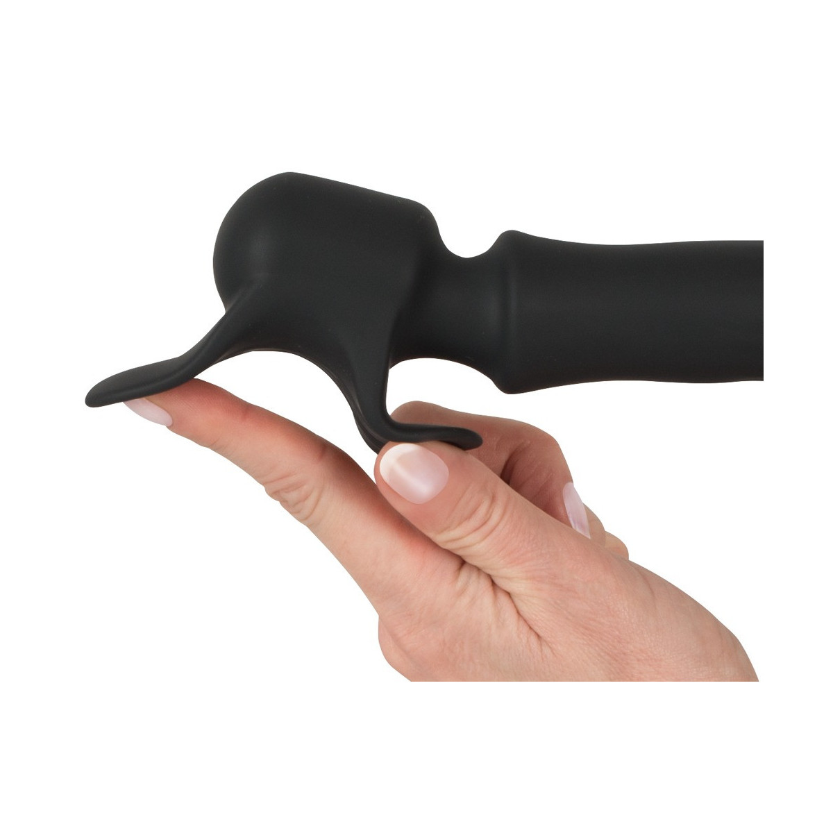 Lunghezza totale 20,1 cm, Ø testa 7,2 cm; Ø anello 3 cm, estensibile. Silicone, PU, ABS.
