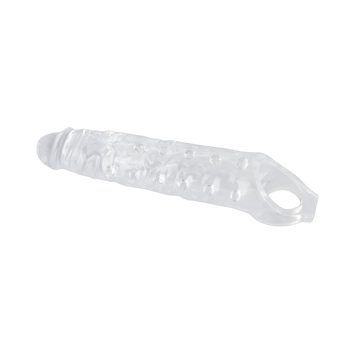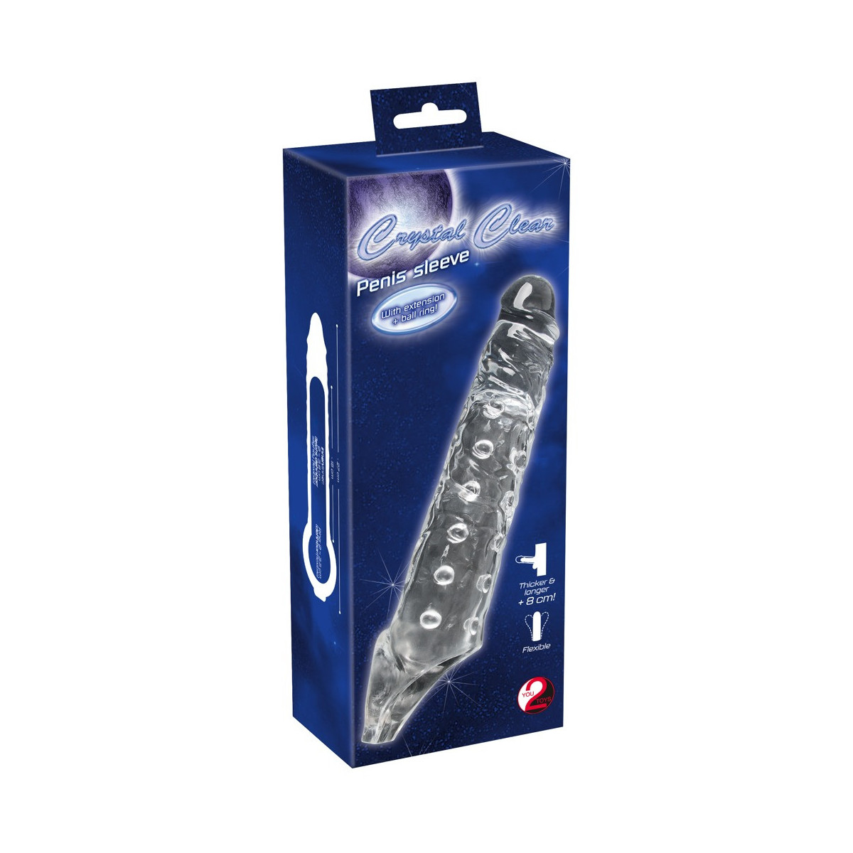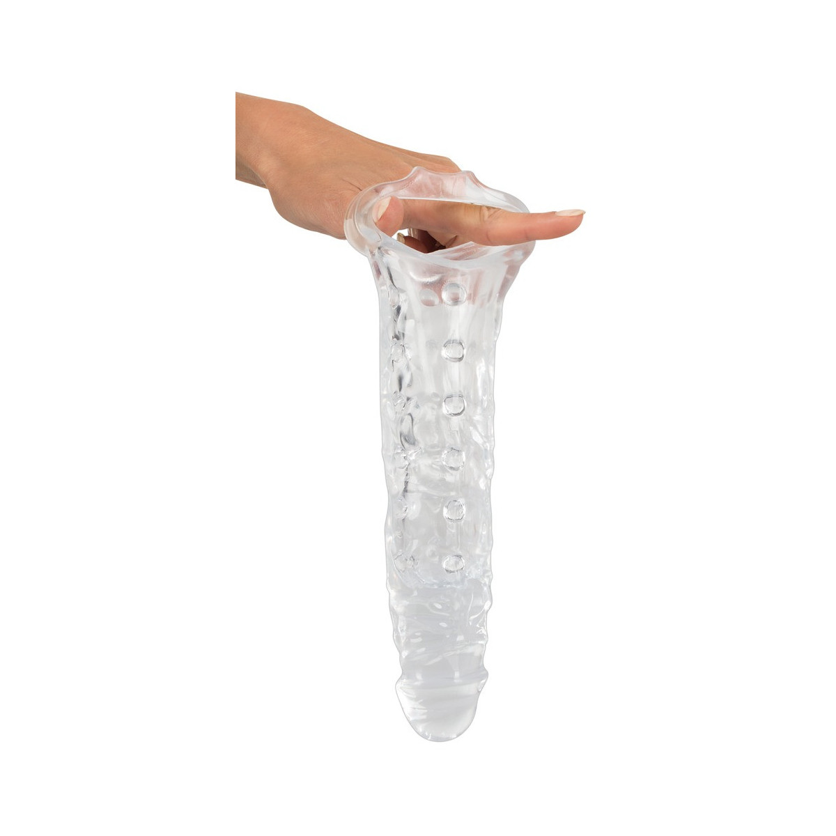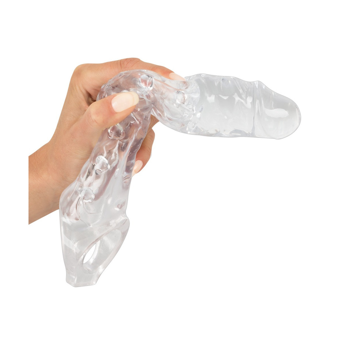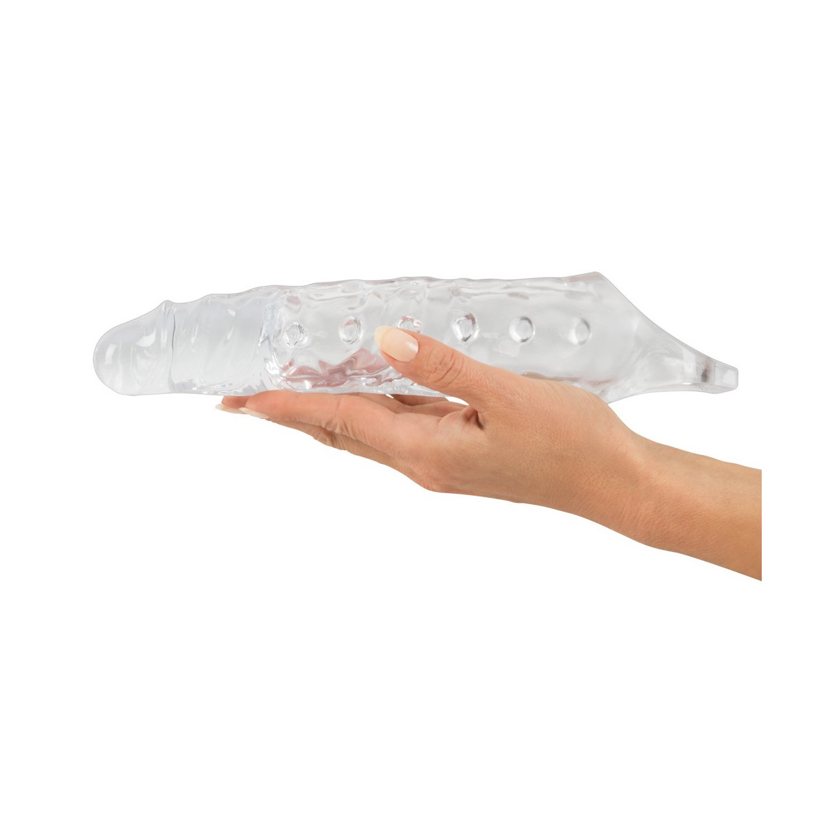 La guaina per pene trasparente con anello per testicoli della Crystal Clear mette il tuo pene in ottima forma in pochissimo tempo. Il manicotto aderente in morbido materiale elastico con eccitanti nodi all'interno viene semplicemente infilato sul membro eretto. L'anello integrato per i testicoli assicura una vestibilità ferma e confortevole senza scivolare. Grazie al magnifico diametro esterno e allo spessore del materiale, il pene si ingrandisce notevolmente in circonferenza. E il glande massiccio si estende di ben 8 cm!