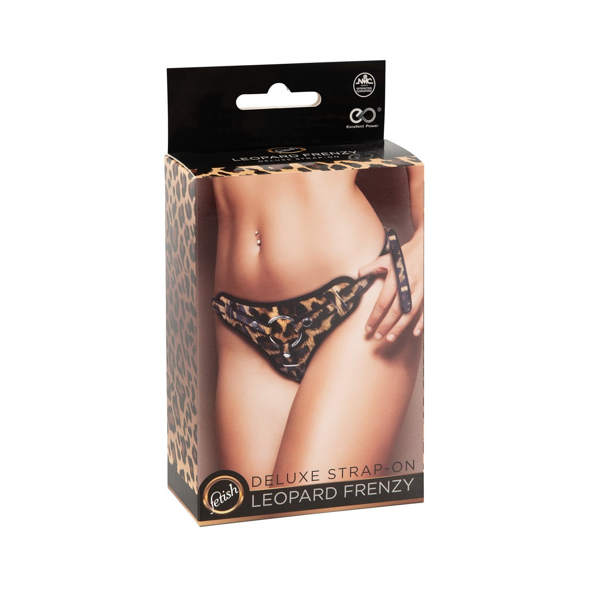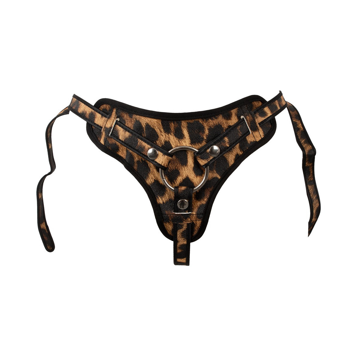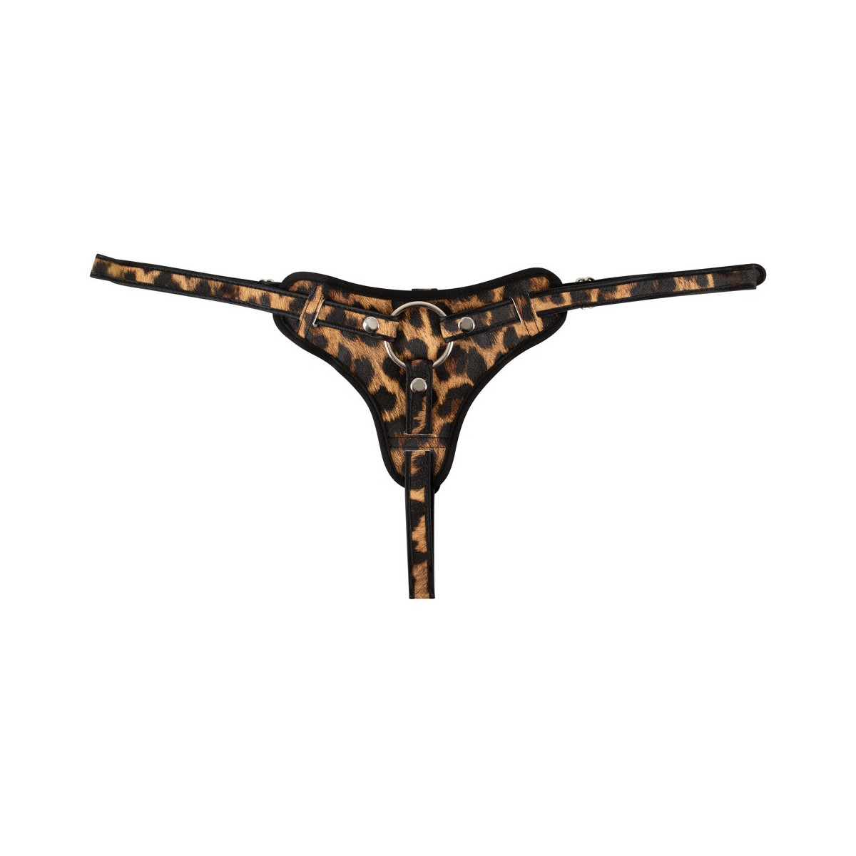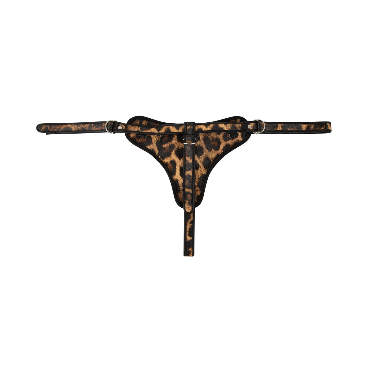 Perizoma regolabile di Leopard Frenzy (Excellent Power) in un look leo di tendenza. Può essere usato universalmente con molti dildo e vibratori che hanno un piede di aspirazione o di appoggio. Basta aprire i bottoni a pressione nella parte anteriore e inserire un dildo/vibratore utilizzando l'anello (Ø 4,5 cm). Circonferenza della corda regolabile da 56 cm a 127 cm (taglia S-L).