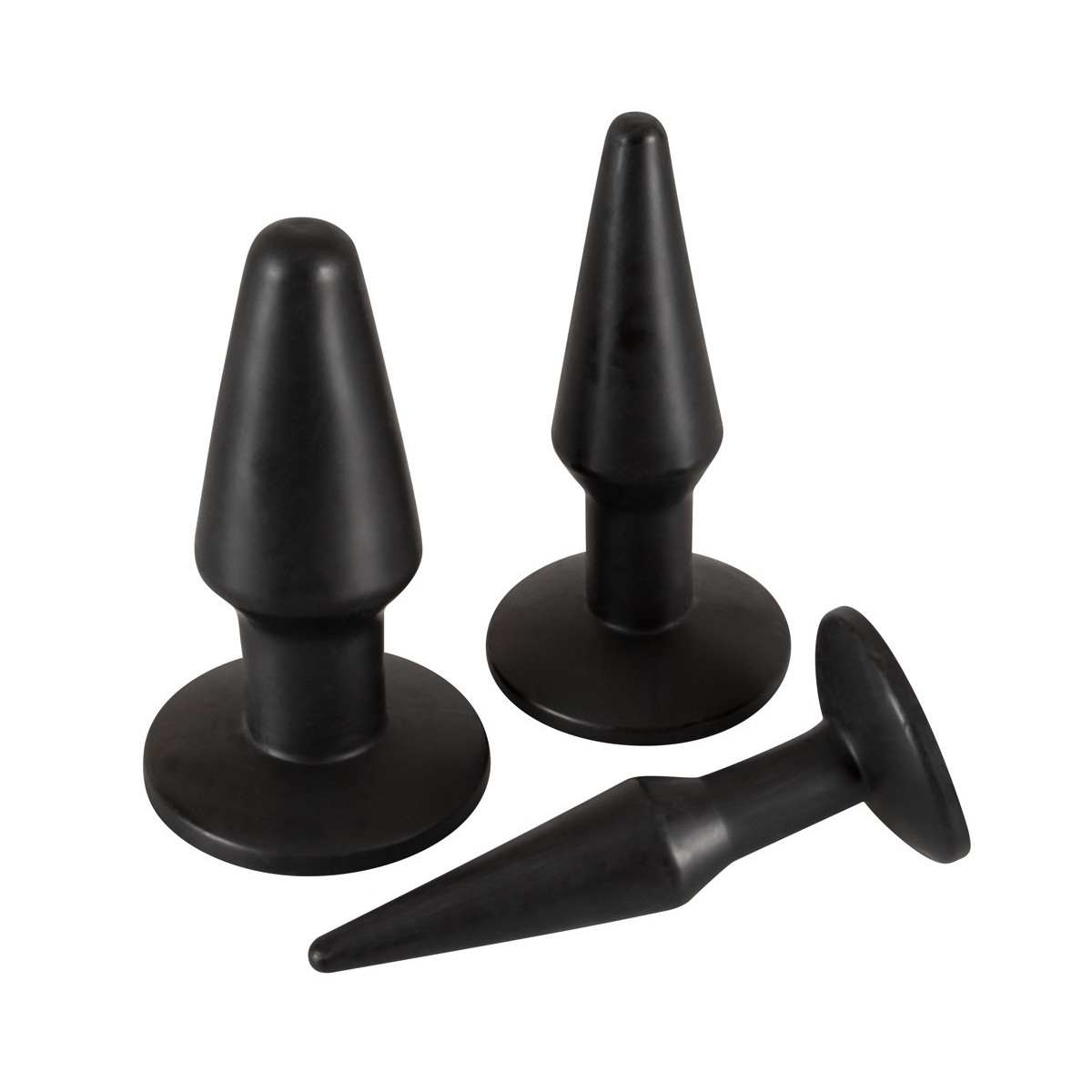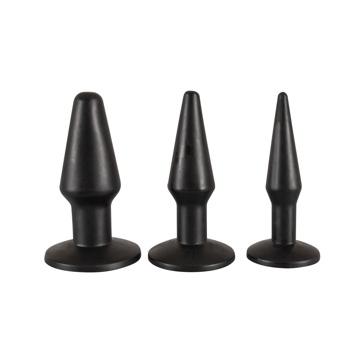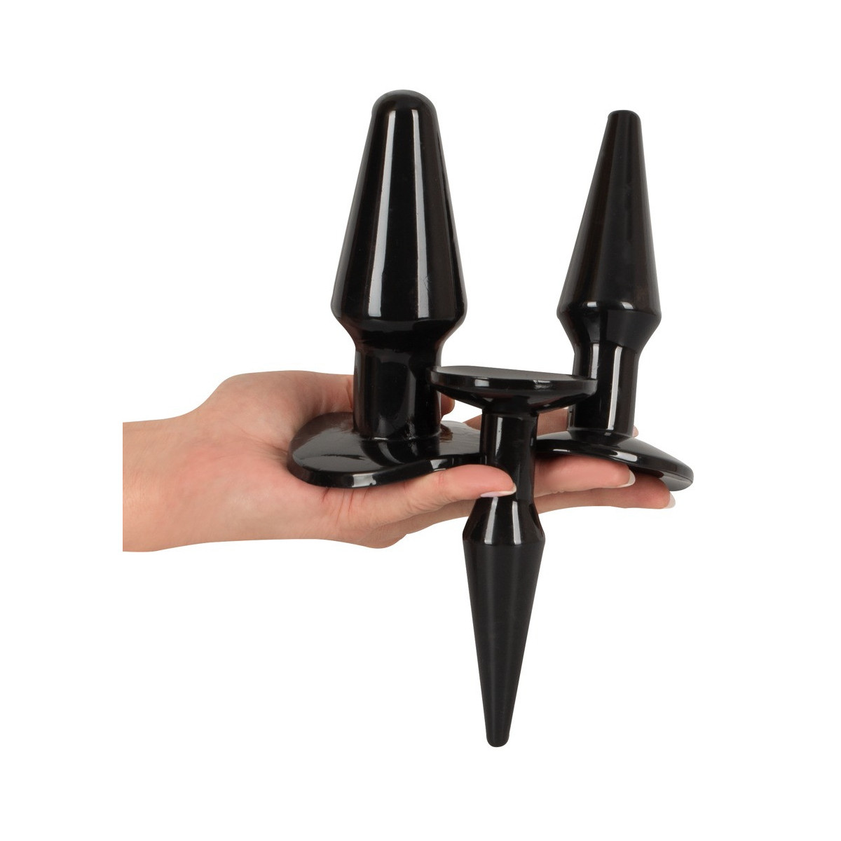 ...e poi si può passare alla grande! Con questo set di butt plug è possibile lavorare in alto - dal piccolo al grande.