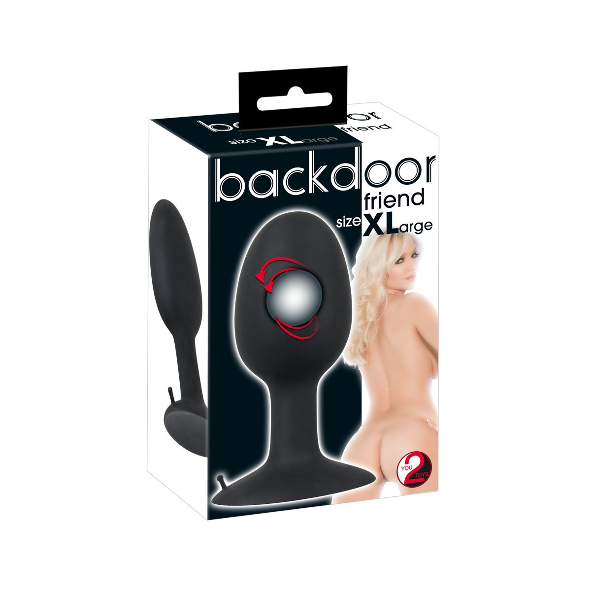 Il plug anale nero XL di Backdoor Friend, con la sua punta piacevolmente arrotondata, scivola grazie alla sua superficie in silicone morbido e molto delicato sulla pelle in modo particolare nel canale del piacere posteriore, si riempie in modo eccitante e tiene pronta un'eccitante sorpresa: una sfera di stimolazione interna rotante! Con base di aspirazione.