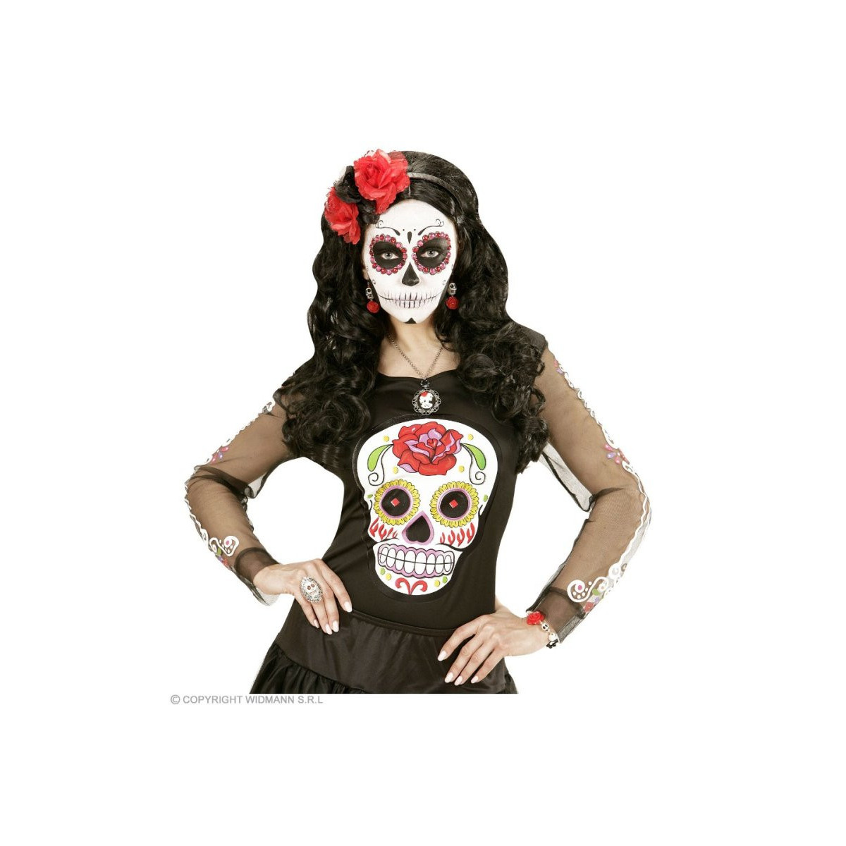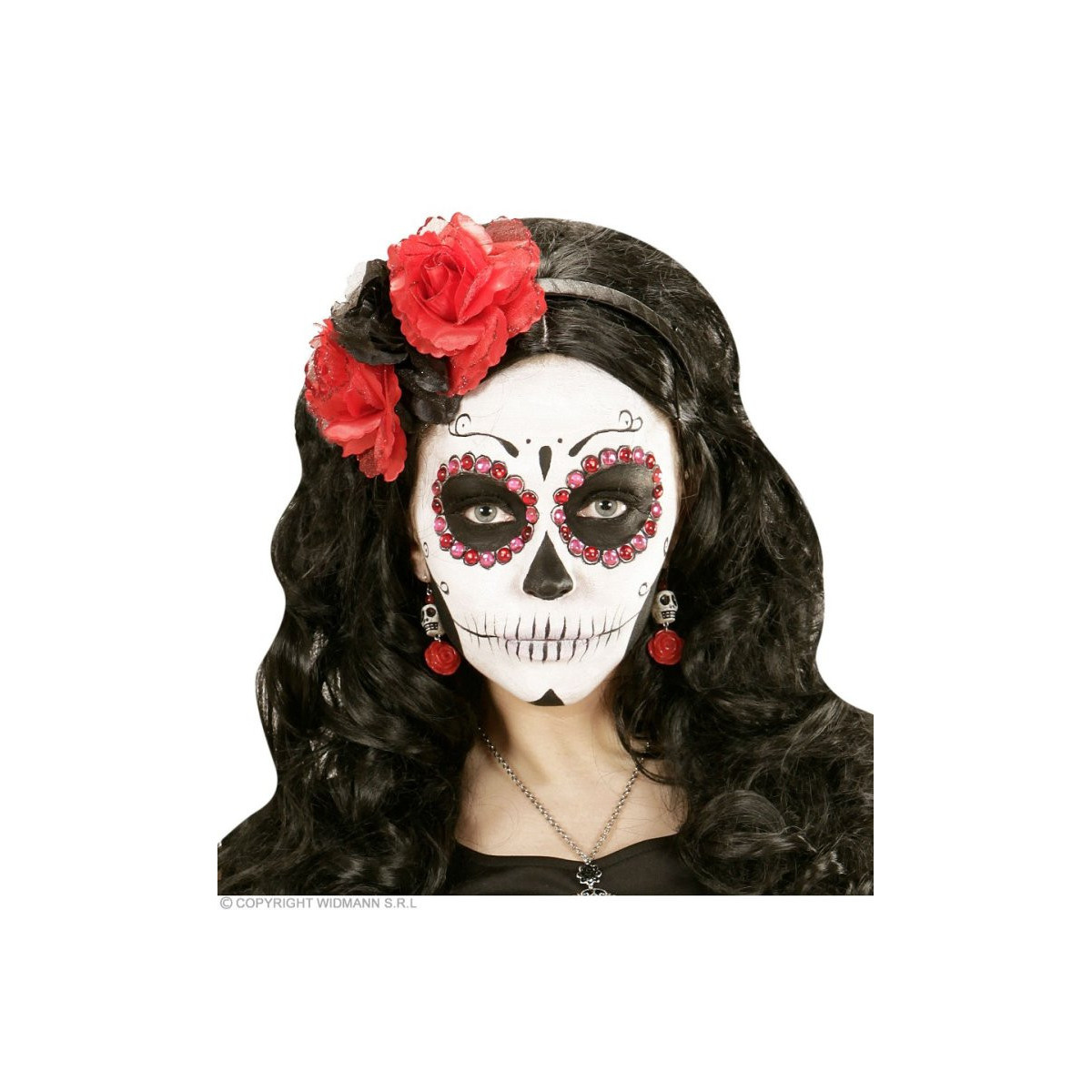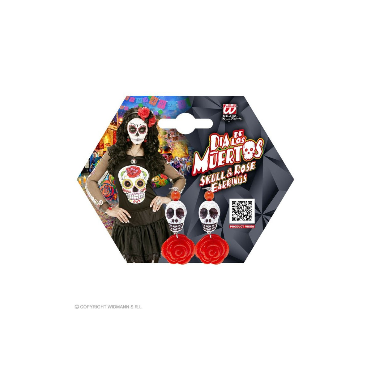 Paio di ORECCHINI TESCHIO BIANCO CON ROSA ROSSA