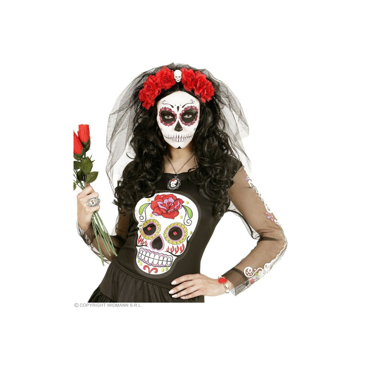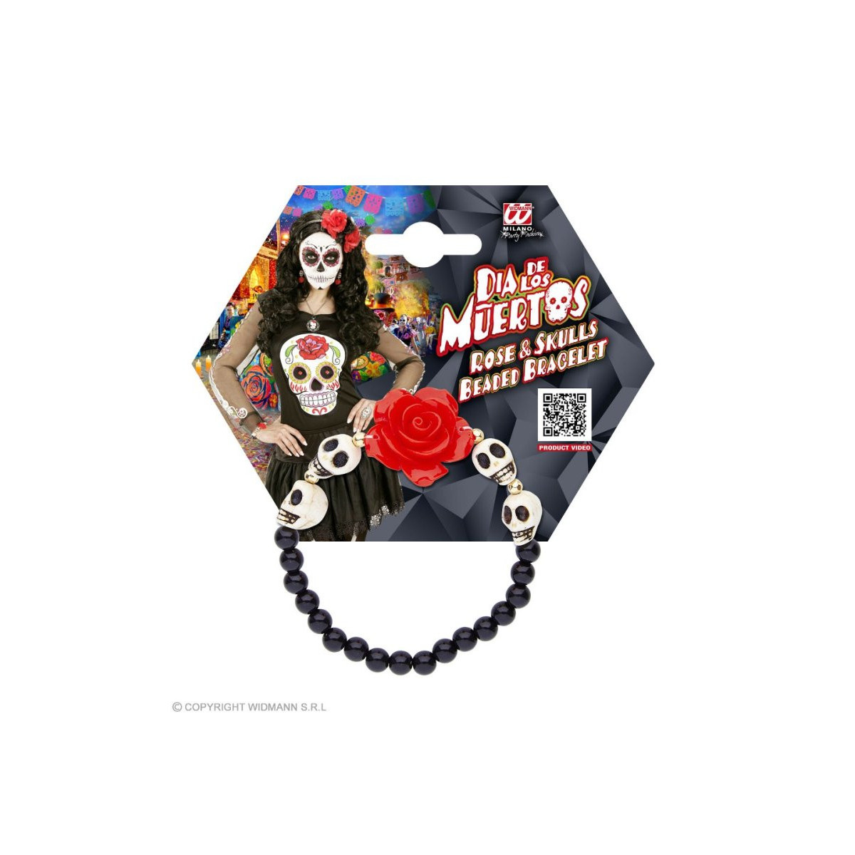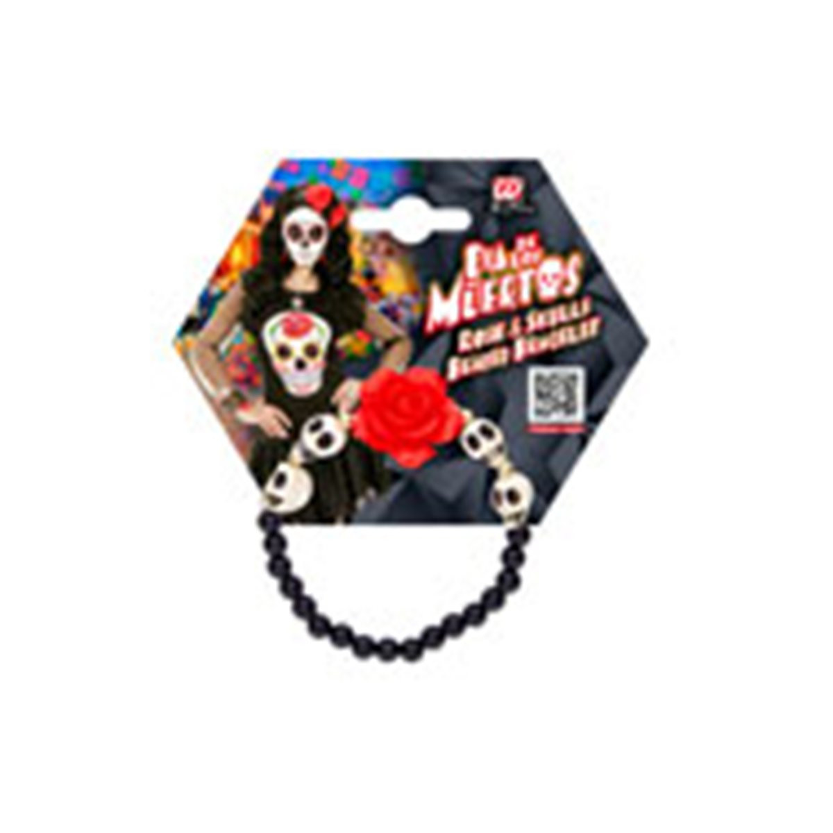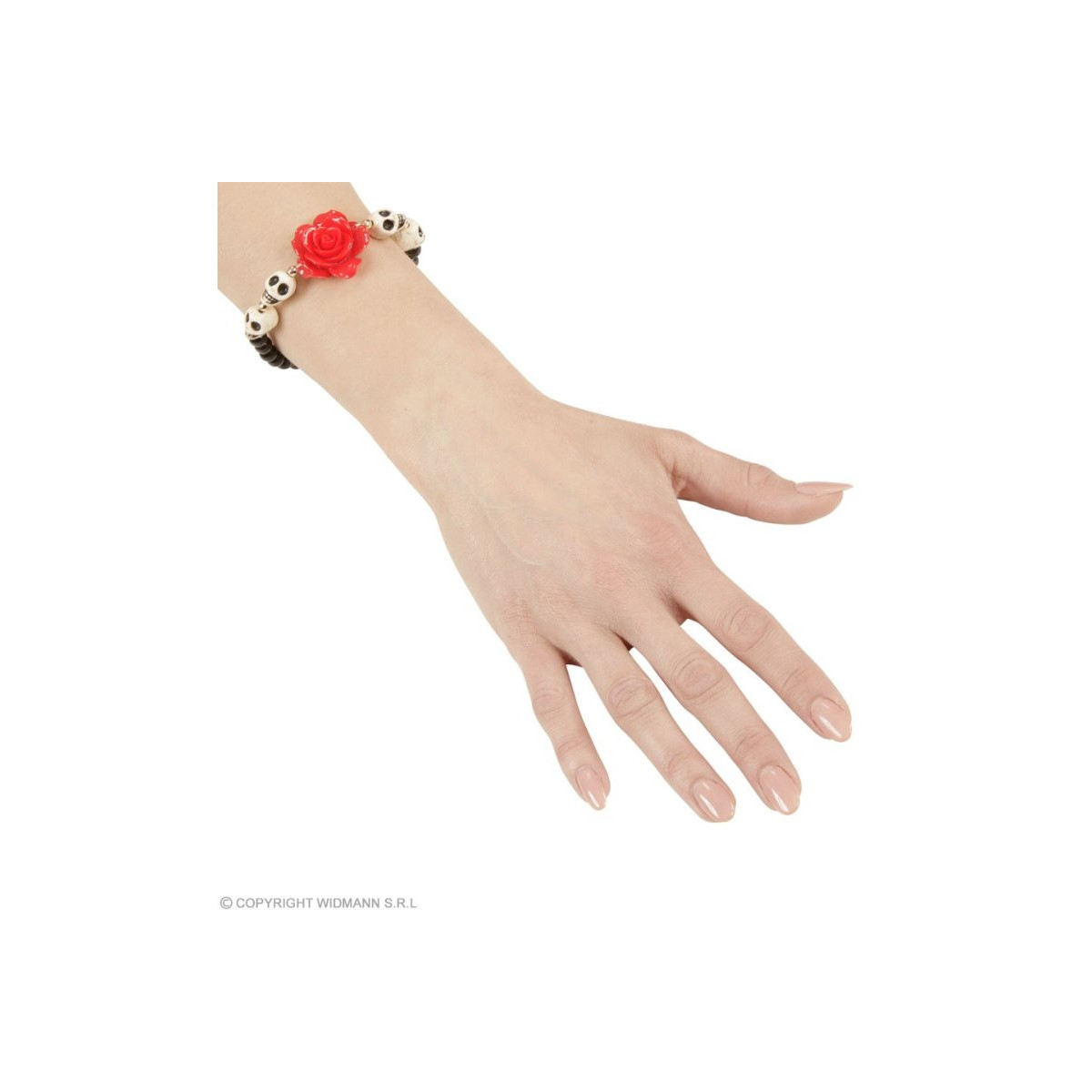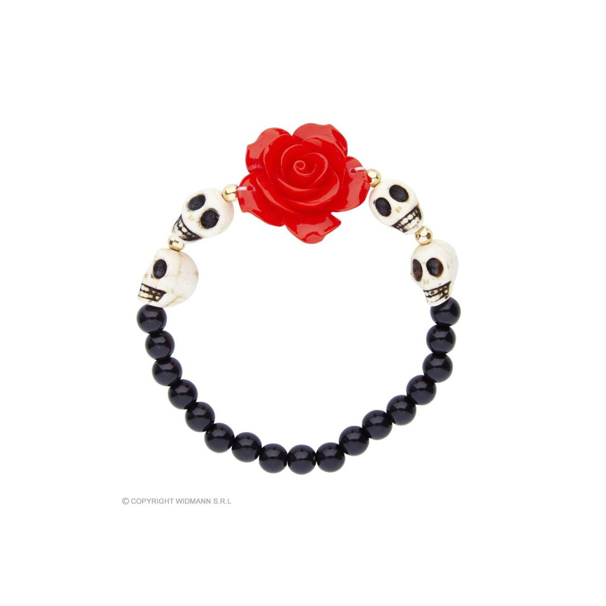 BRACCIALETTO ROSA ROSSA CON TESCHI BIANCHI E PERLINE